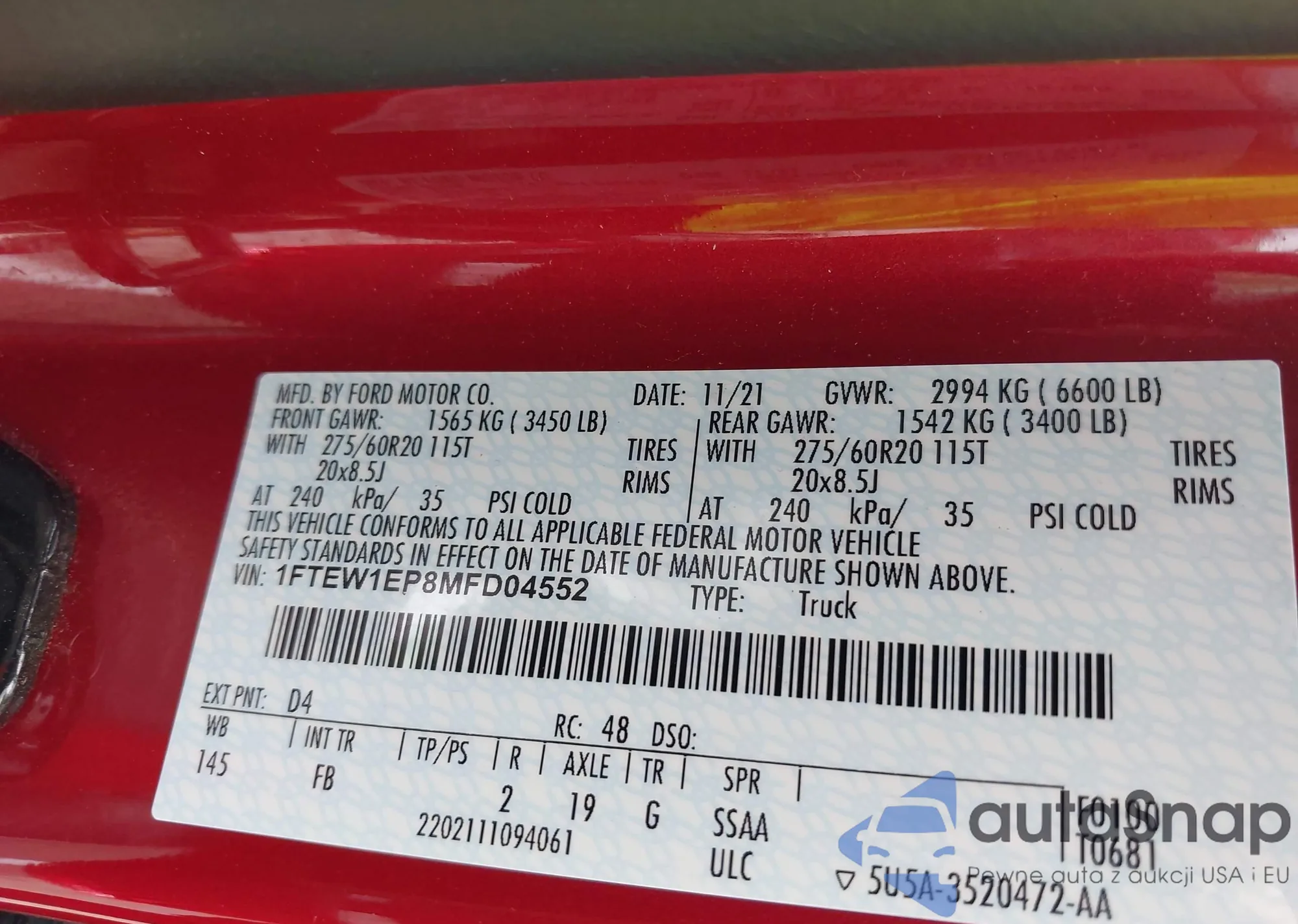 VIN: 1FTEW1EP8MFD04552