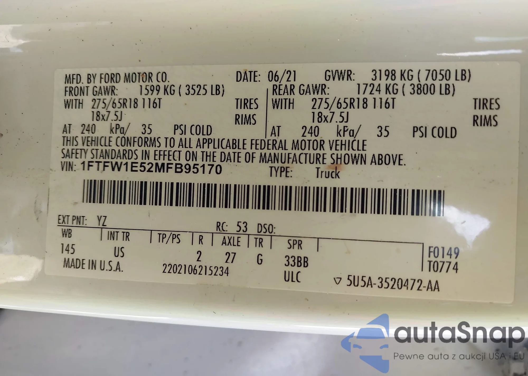 Ford F-150 2021 – Historia pojazdu (sprzedany na IAAI)
