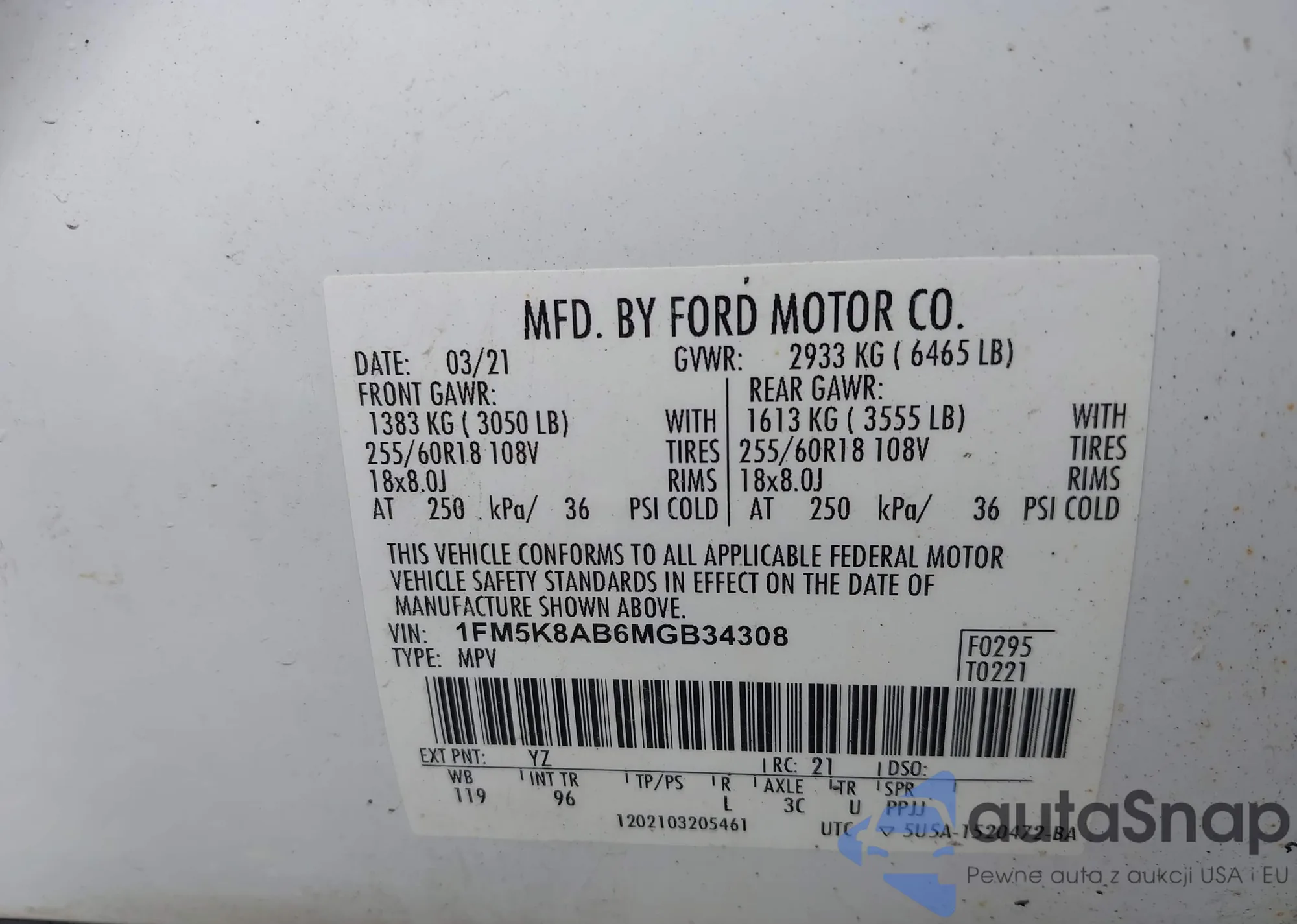 VIN: 1FM5K8AB6MGB34308