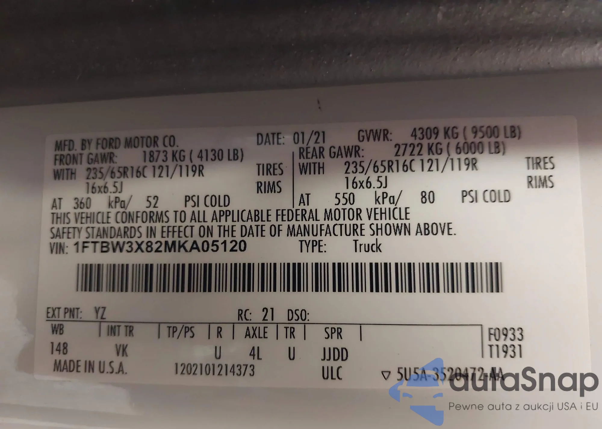 VIN: 1FTBW3X82MKA05120