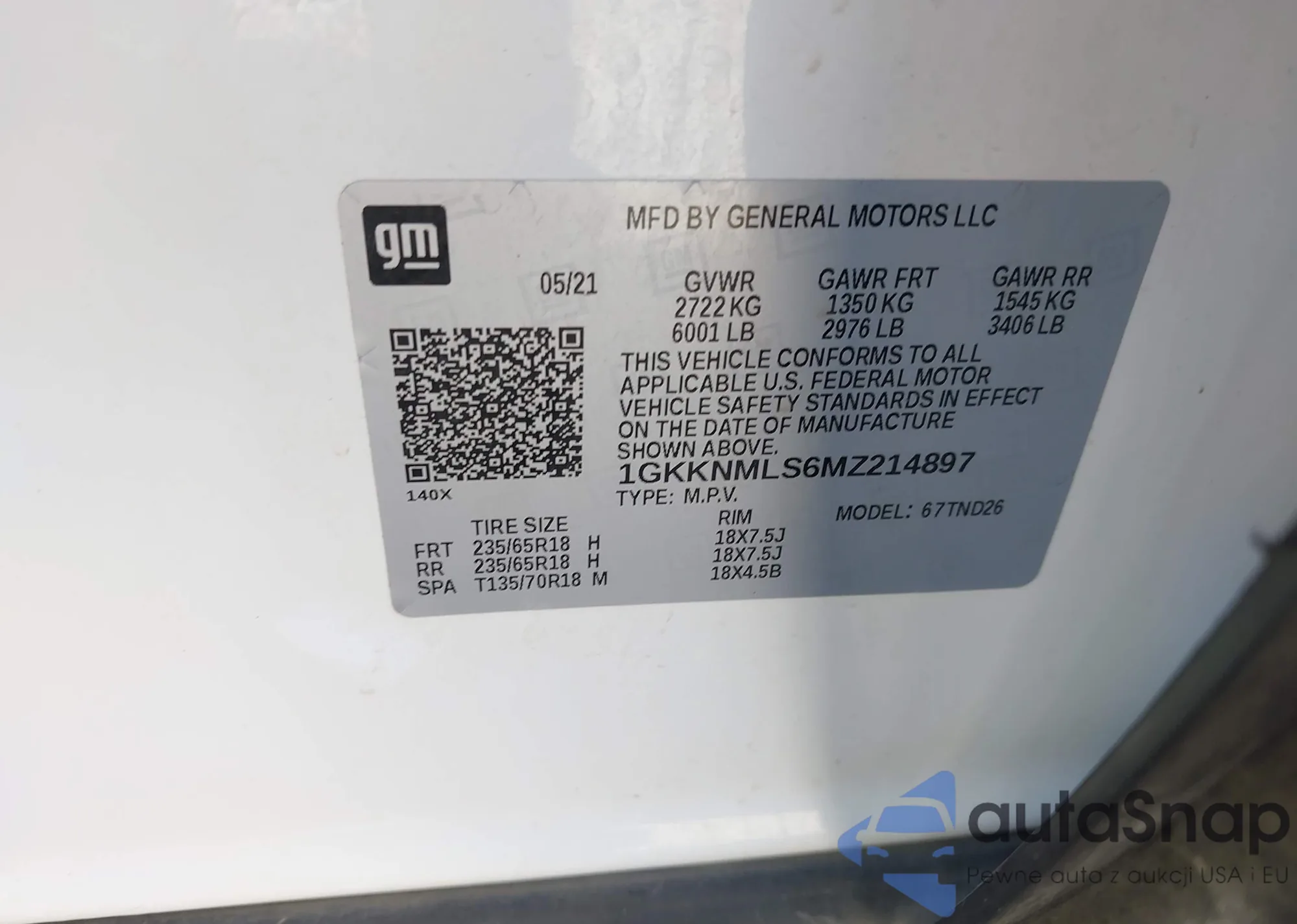 VIN: 1GKKNMLS6MZ214897