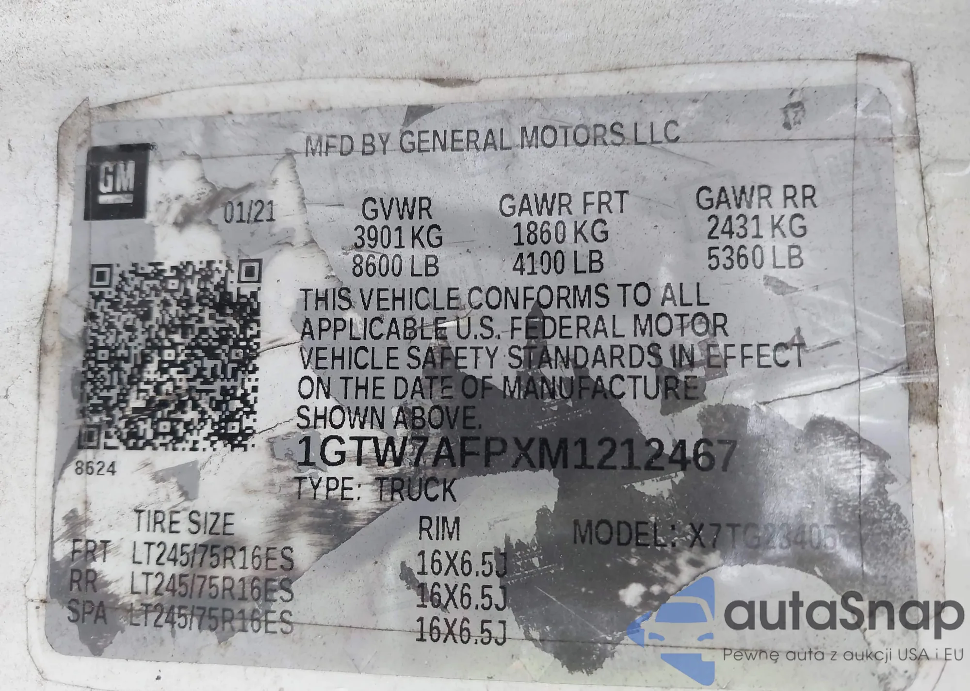VIN: 1GTW7AFPXM1212467
