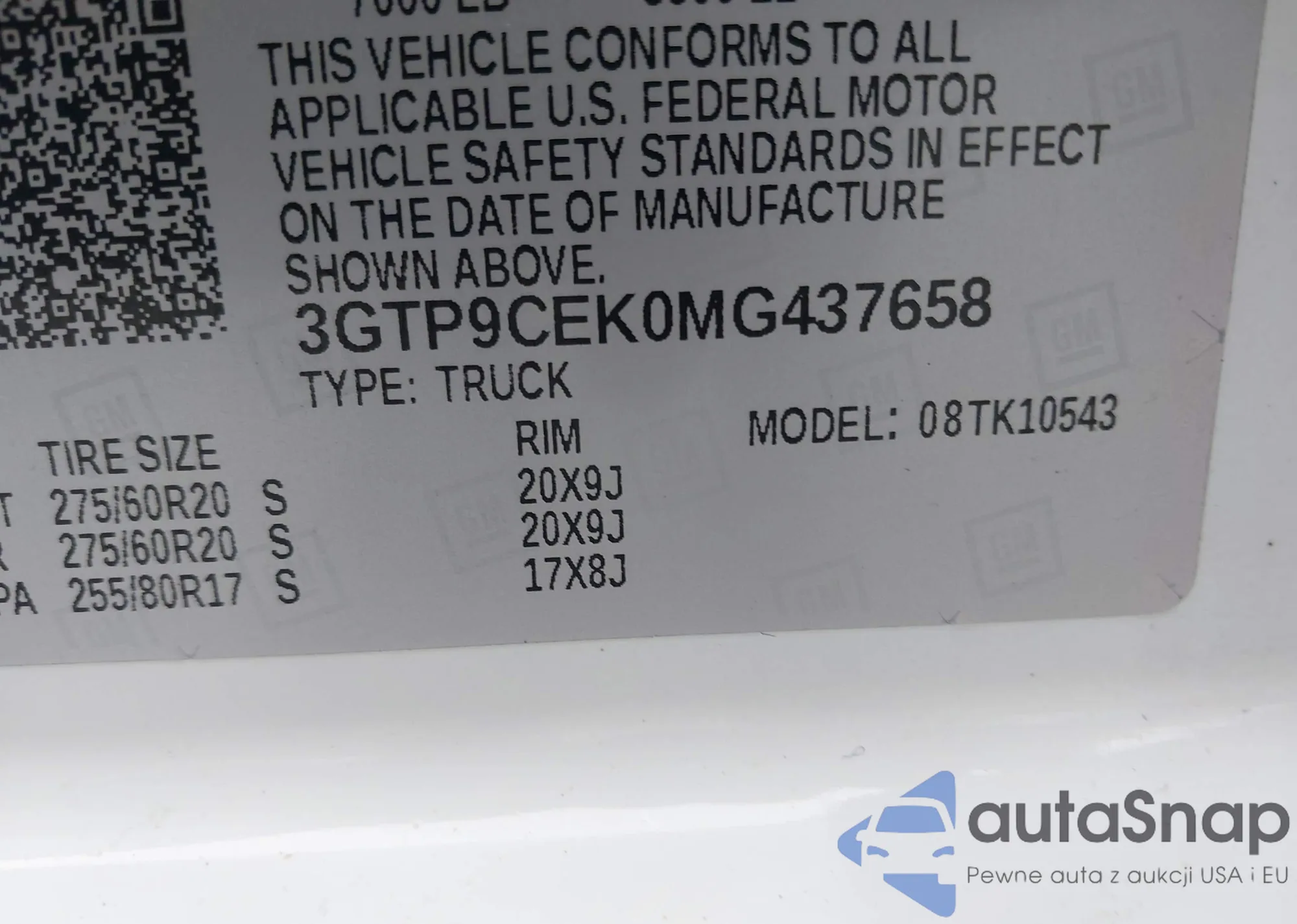 Samochód GMC Sierra 2021 (VIN 3GTP9CEK0MG437658) nie był wcześniej licytowany. Dokumenty są czyste, przebieg odpowiada lub jest niższy niż średnia rynku. Sprzedaje go firma ubezpieczeniowa – polecamy zakup. Dostawa do portu zajmie ok. 6–8 tygodni.
