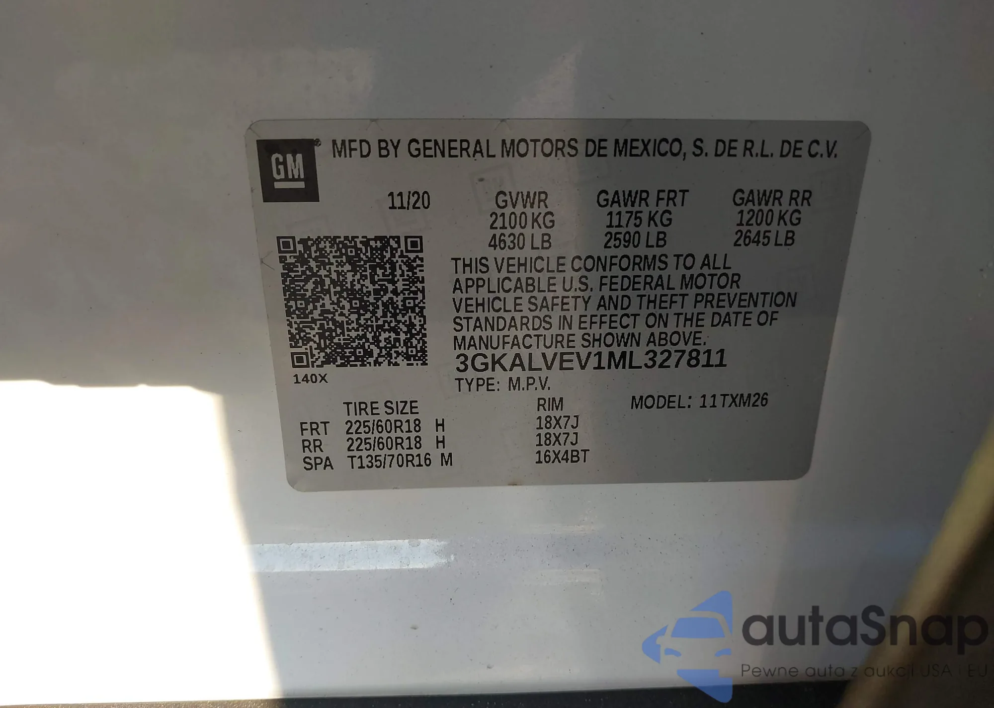 VIN: 3GKALVEV1ML327811