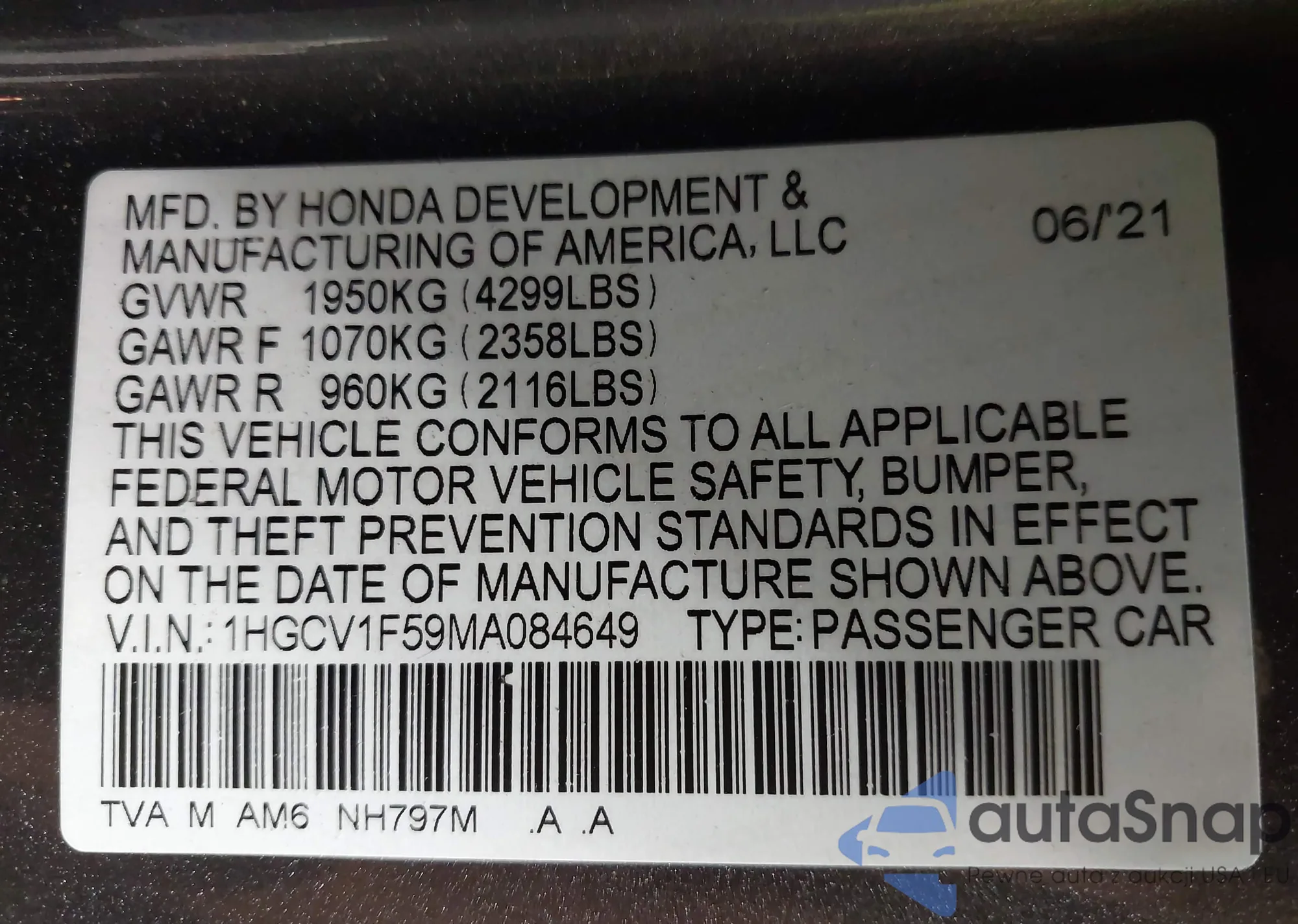 • VIN: 1HGCV1F59MA084649