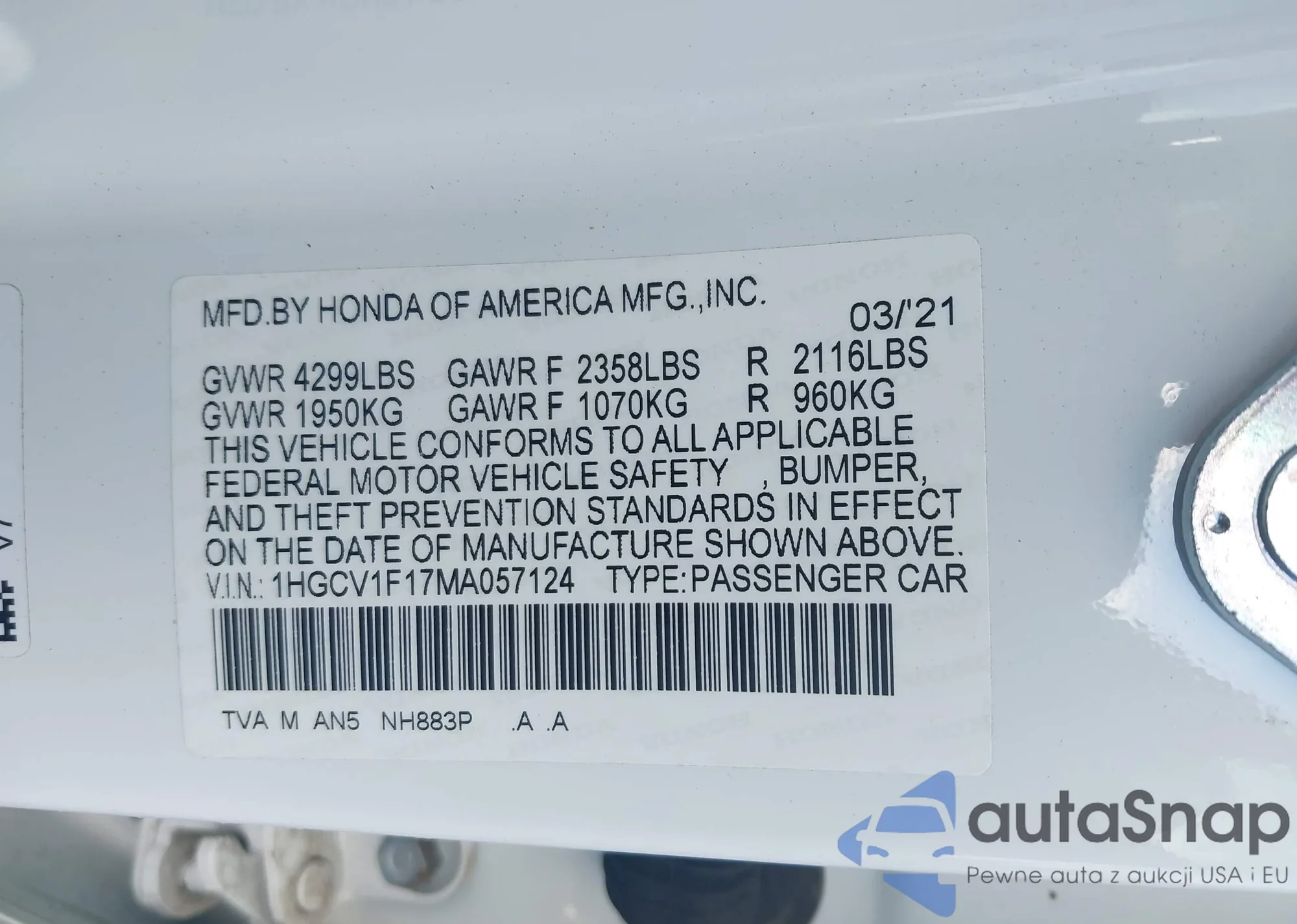 VIN: 1HGCV1F17MA057124