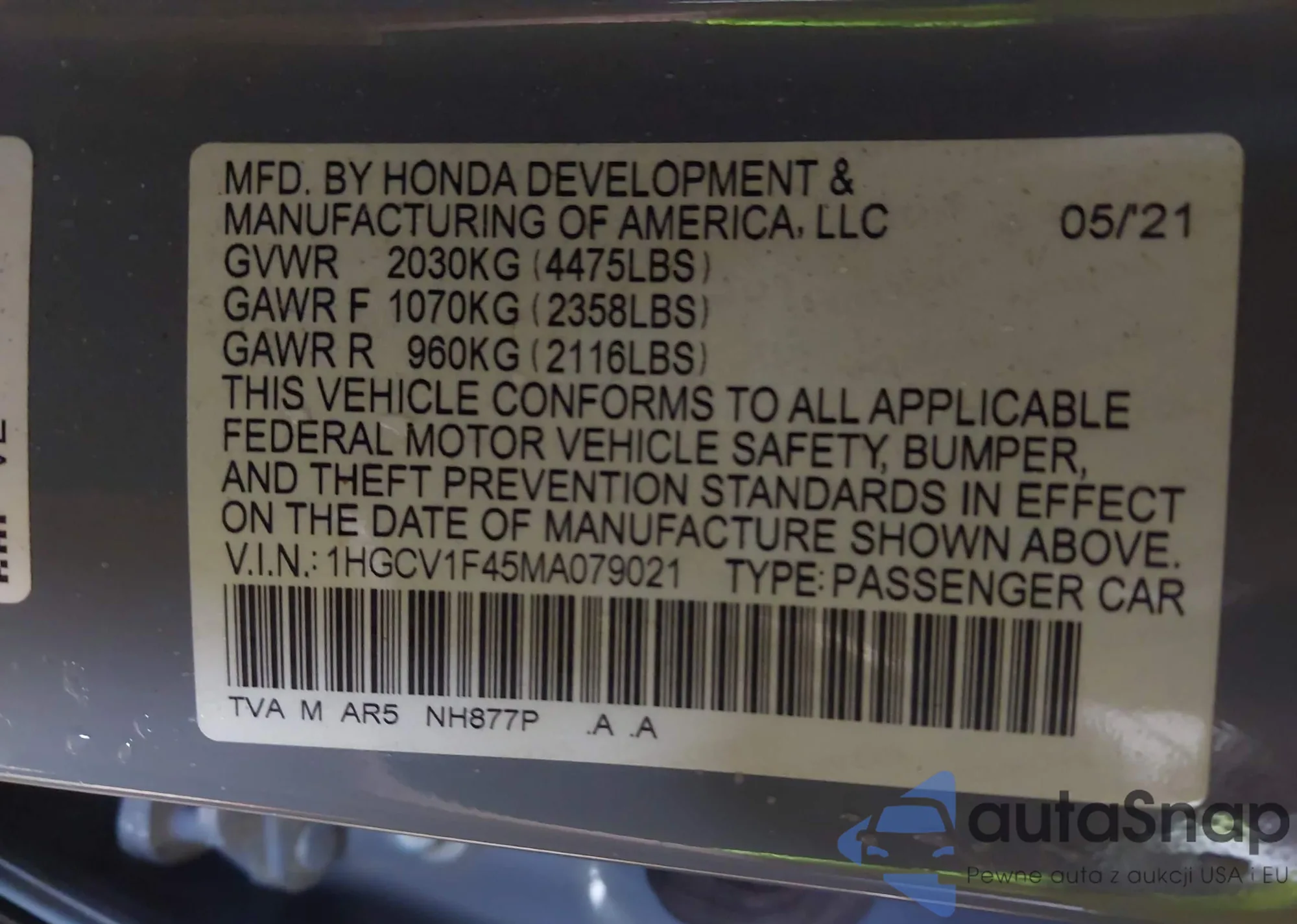 VIN: 1HGCV1F45MA079021