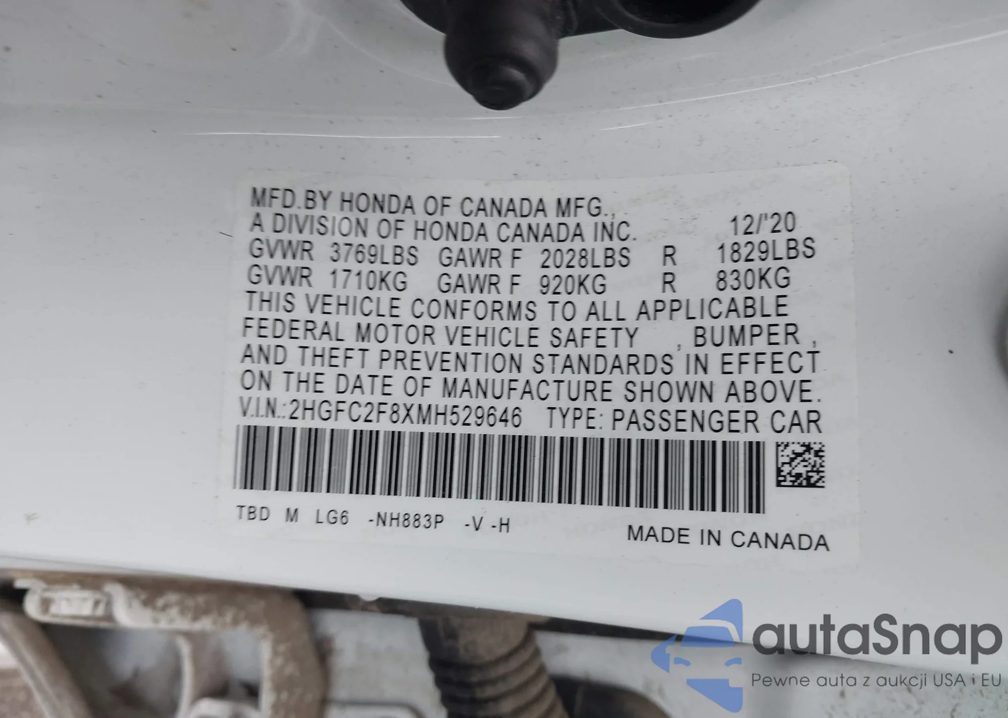 VIN: 2HGFC2F8XMH529646