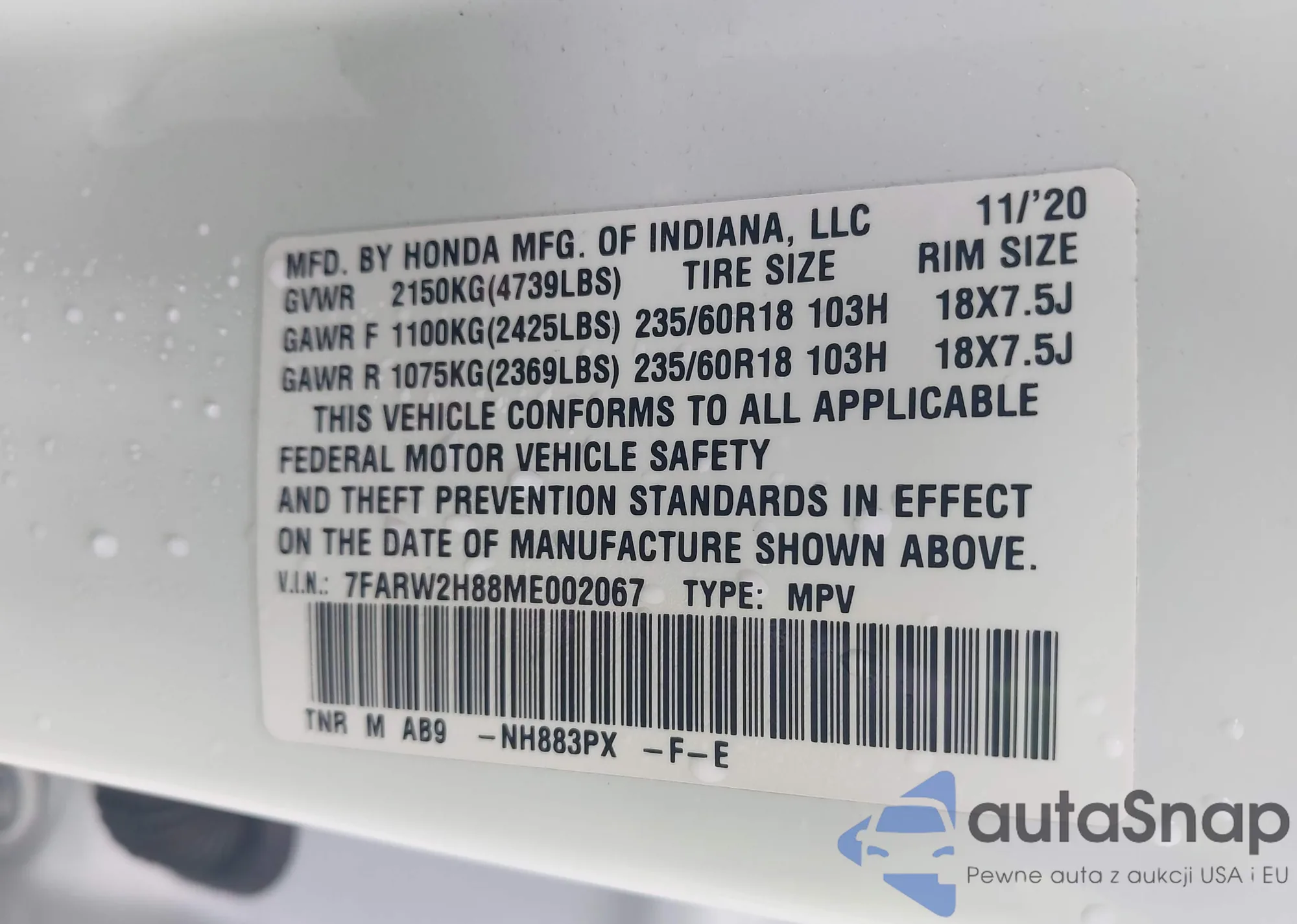 VIN: 7FARW2H88ME002067