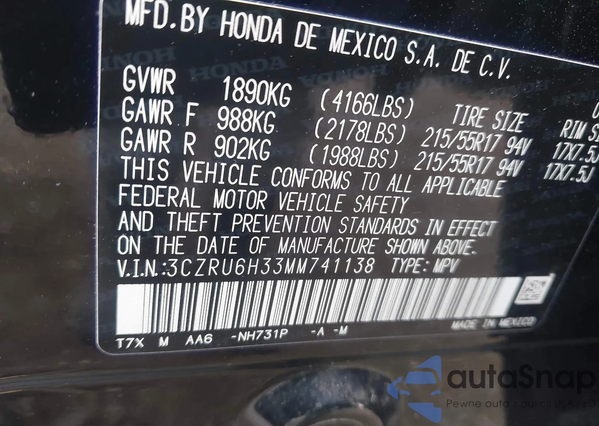 VIN: 3CZRU6H33MM741138