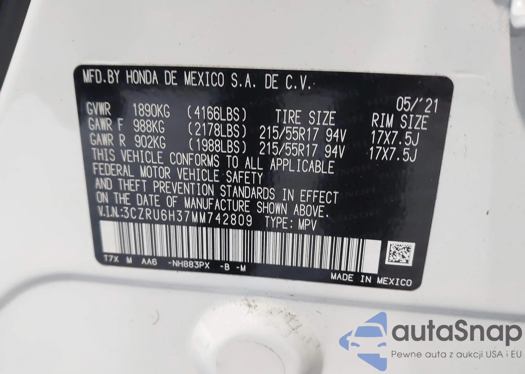 VIN: 3CZRU6H37MM742809