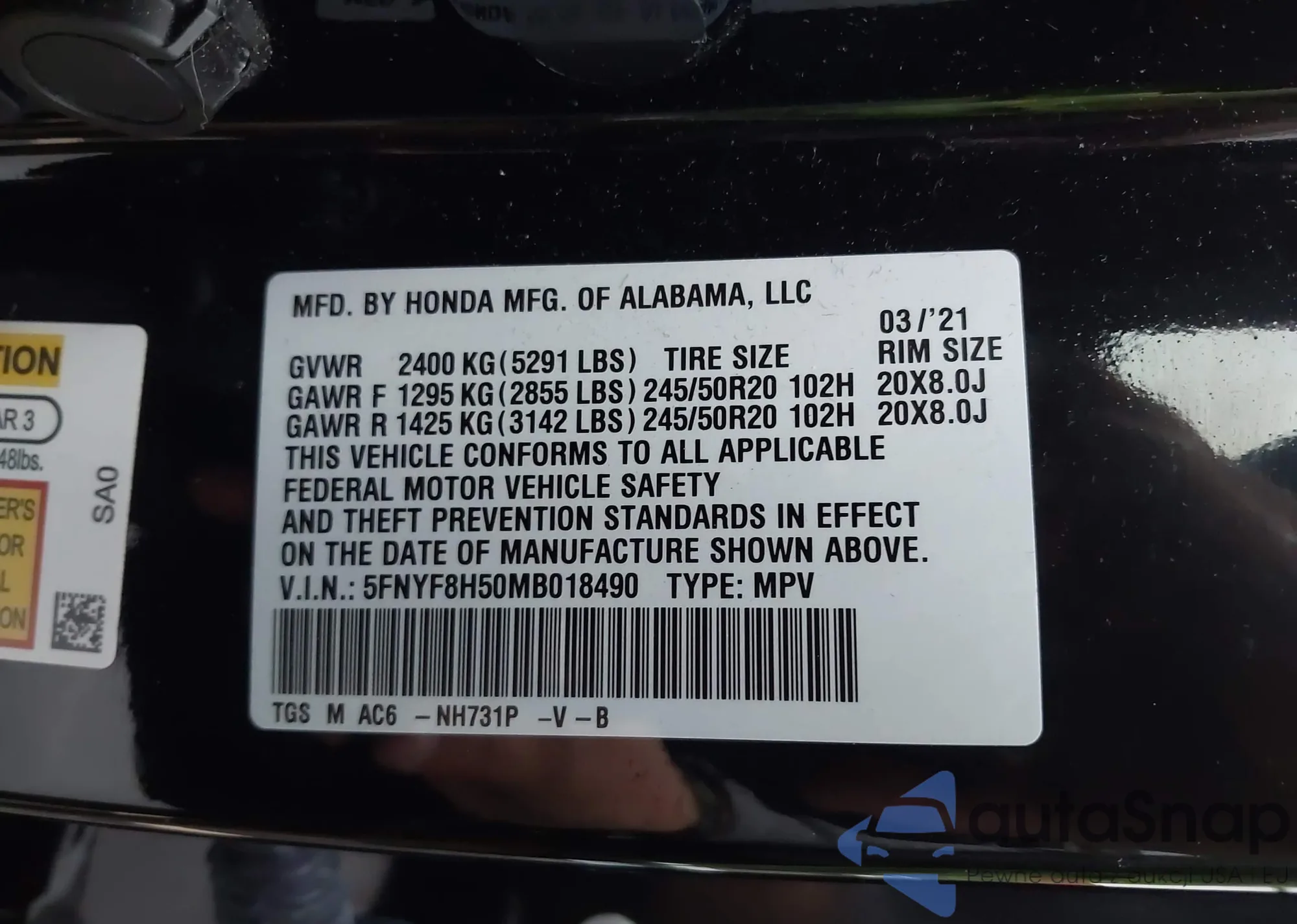 VIN: 5FNYF8H50MB018490