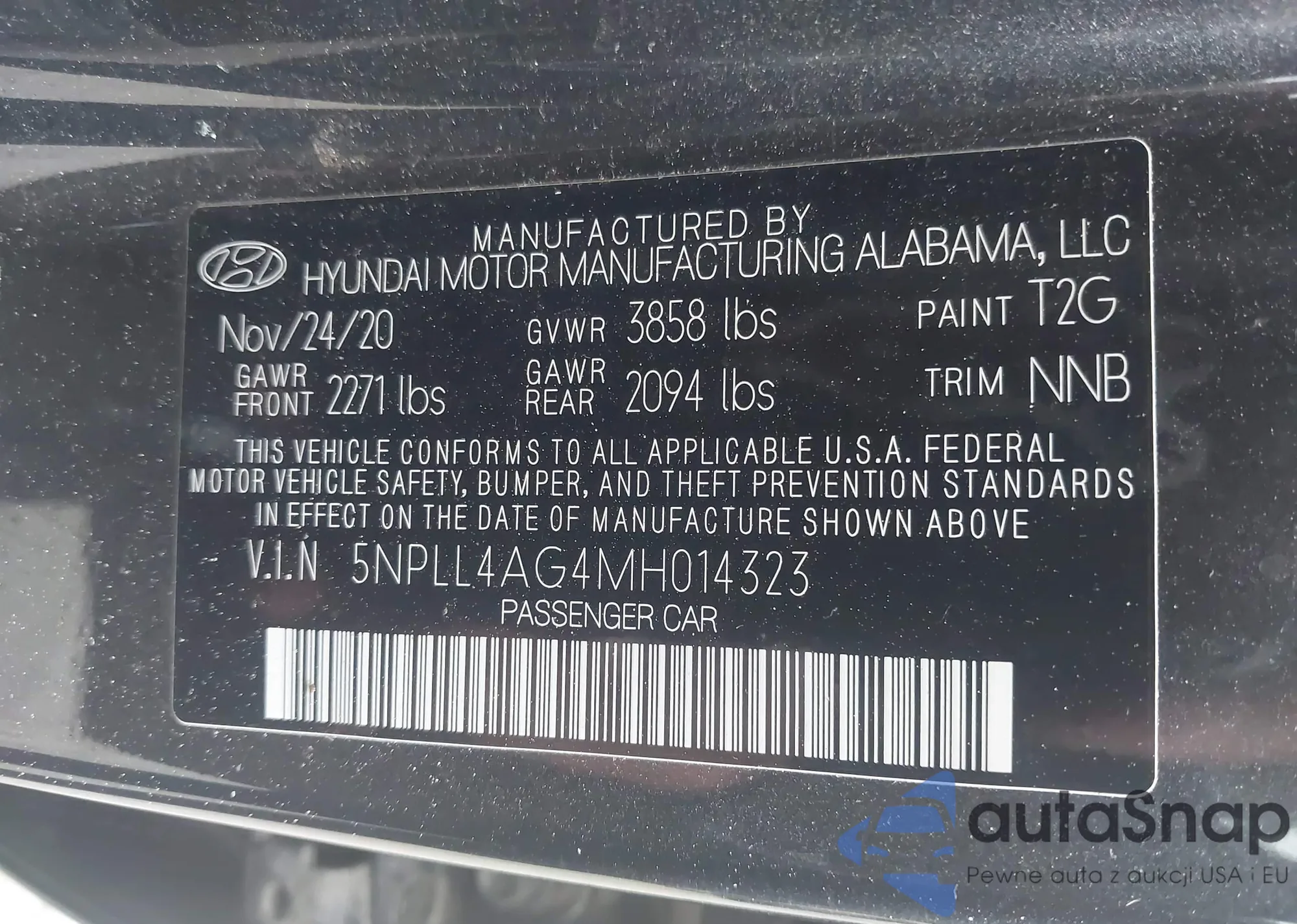 VIN: 5NPLL4AG4MH014323