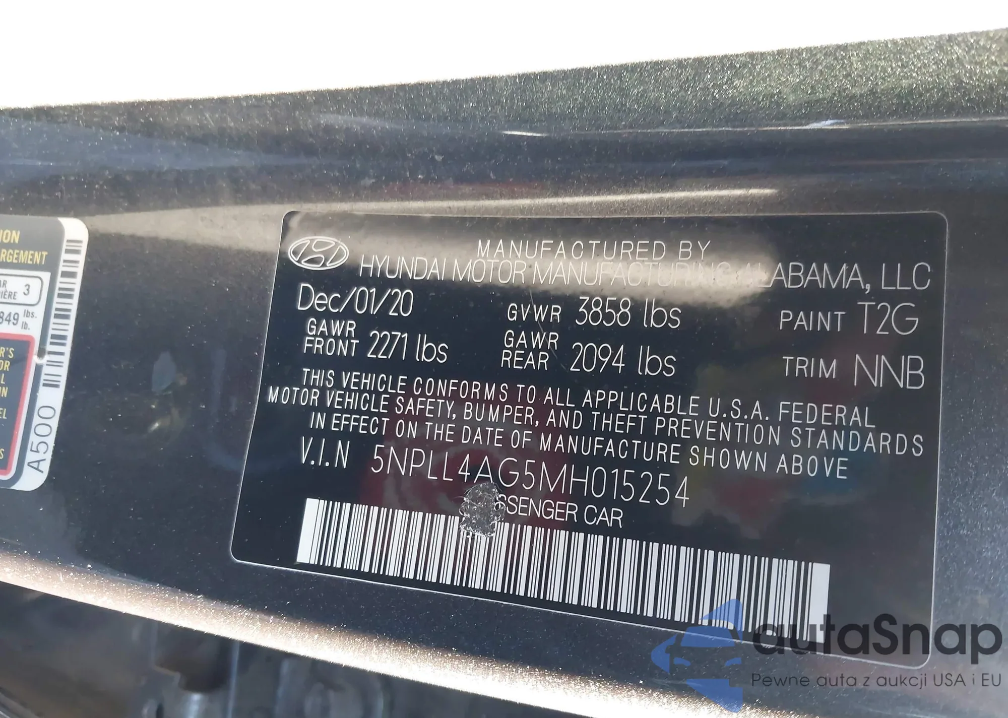 VIN: 5NPLL4AG5MH015254
