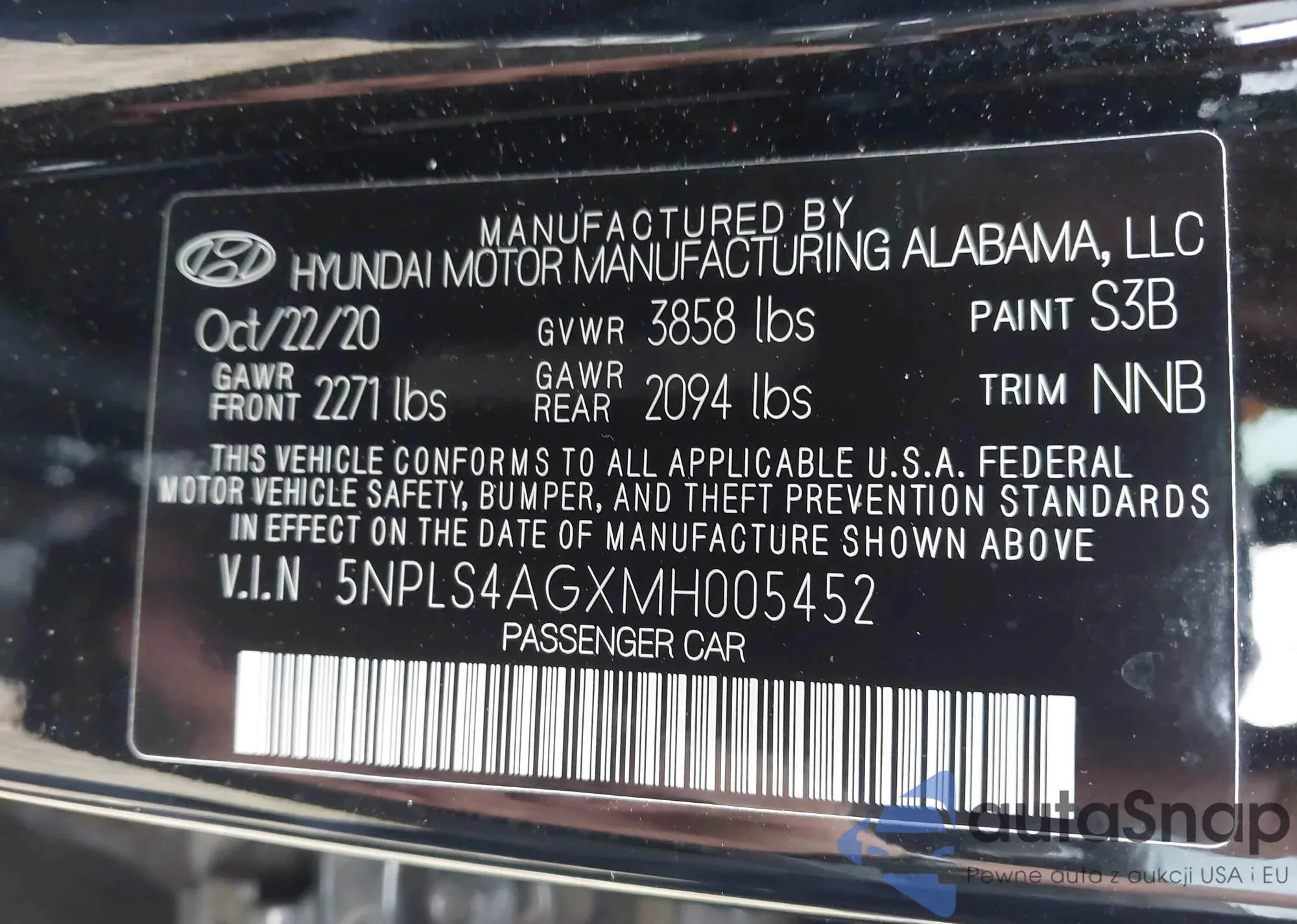 VIN: 5NPLS4AGXMH005452