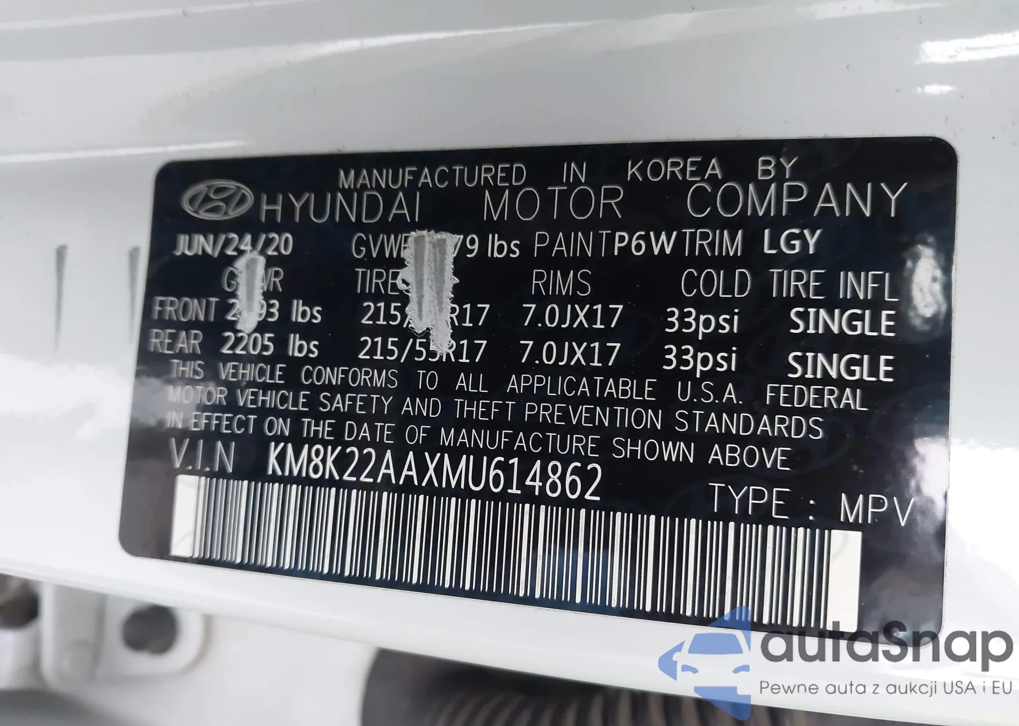 VIN: KM8K22AAXMU614862