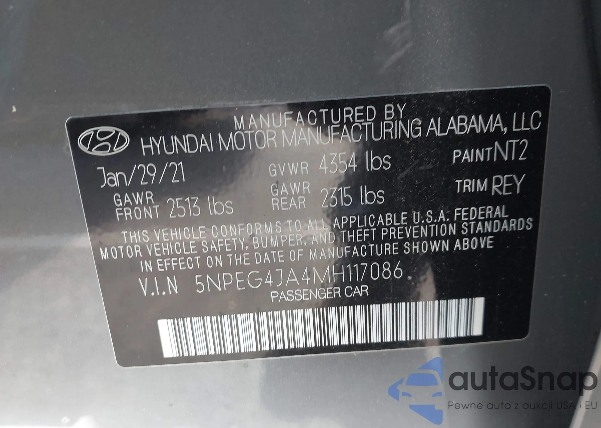 VIN: 5NPEG4JA4MH117086