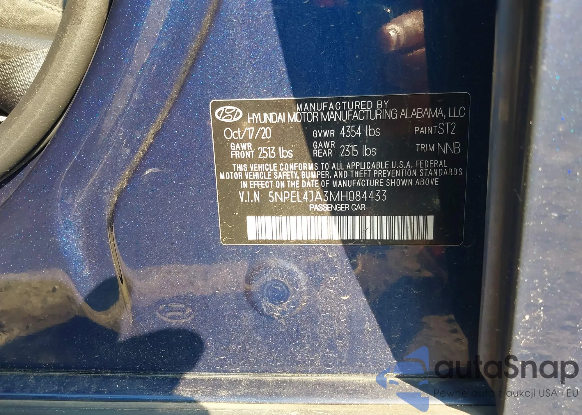 Samochód Hyundai Sonata 2021 (VIN 5NPEL4JA3MH084433) nie był wcześniej licytowany. Dokumenty są czyste, przebieg odpowiada lub jest niższy niż średnia rynku. Sprzedaje go firma ubezpieczeniowa – polecamy zakup. Dostawa do portu zajmie ok. 6–8 tygodni.