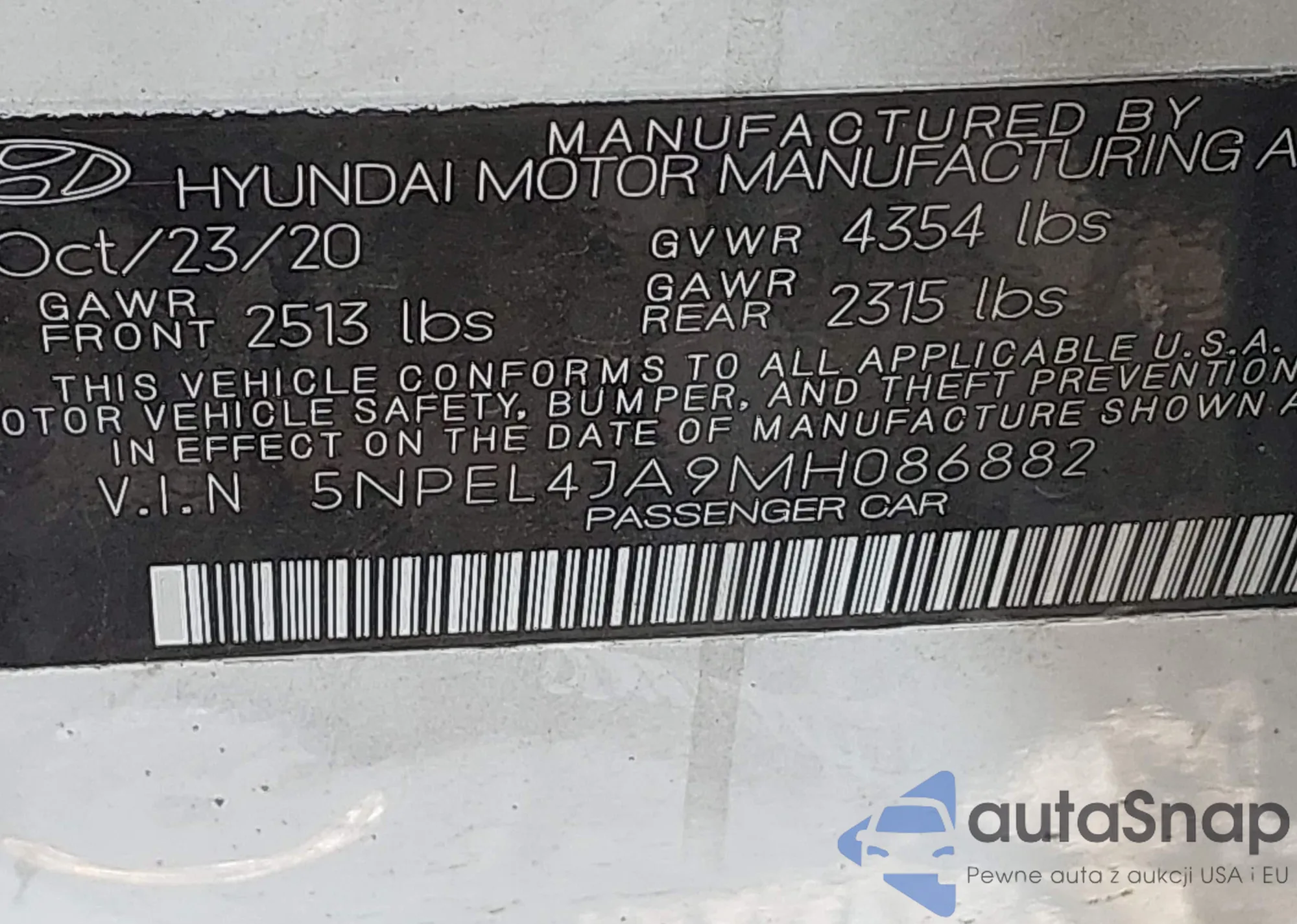 VIN: 5NPEL4JA9MH086882
