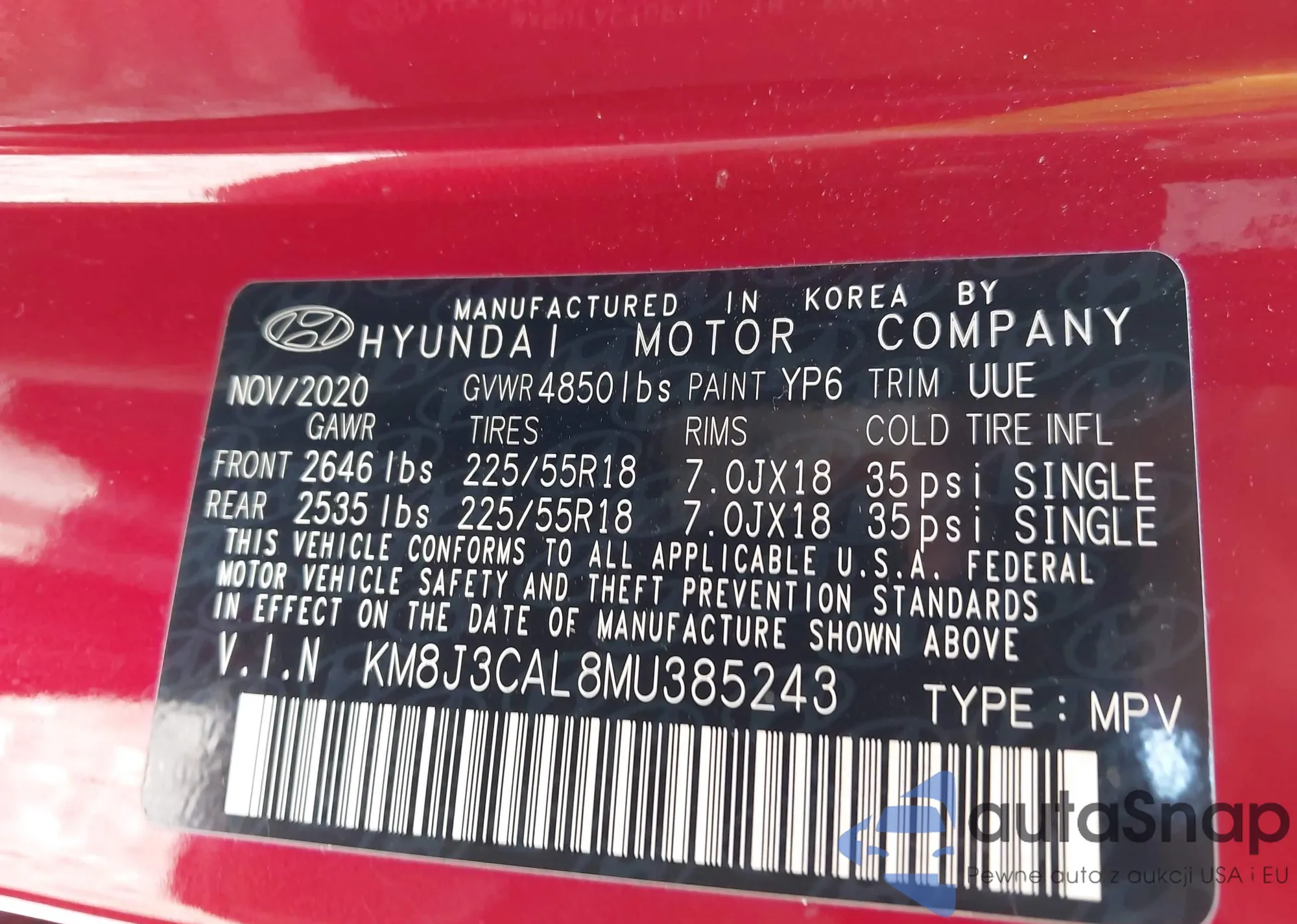 VIN: KM8J3CAL8MU385243