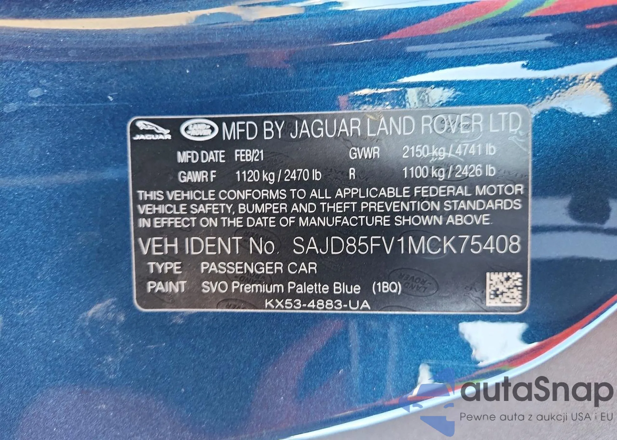 Samochód Jaguar F-Type 2021 (VIN SAJD85FV1MCK75408) sprzedaje go niezweryfikowany sprzedawca. Zalecamy raport Carfax i potwierdzenie możliwości rejestracji pojazdu przed zakupem.