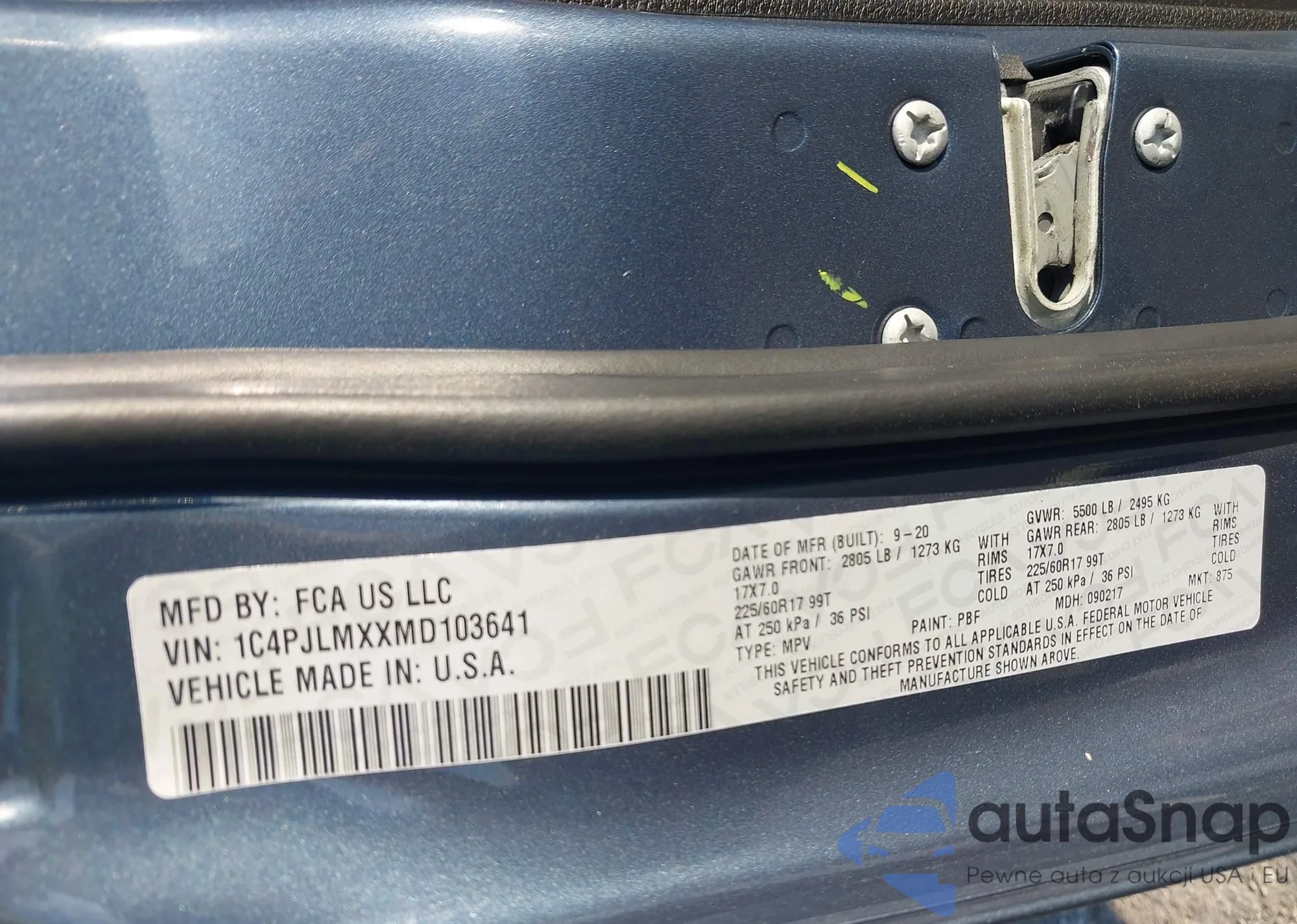 • VIN: 1C4PJLMXXMD103641