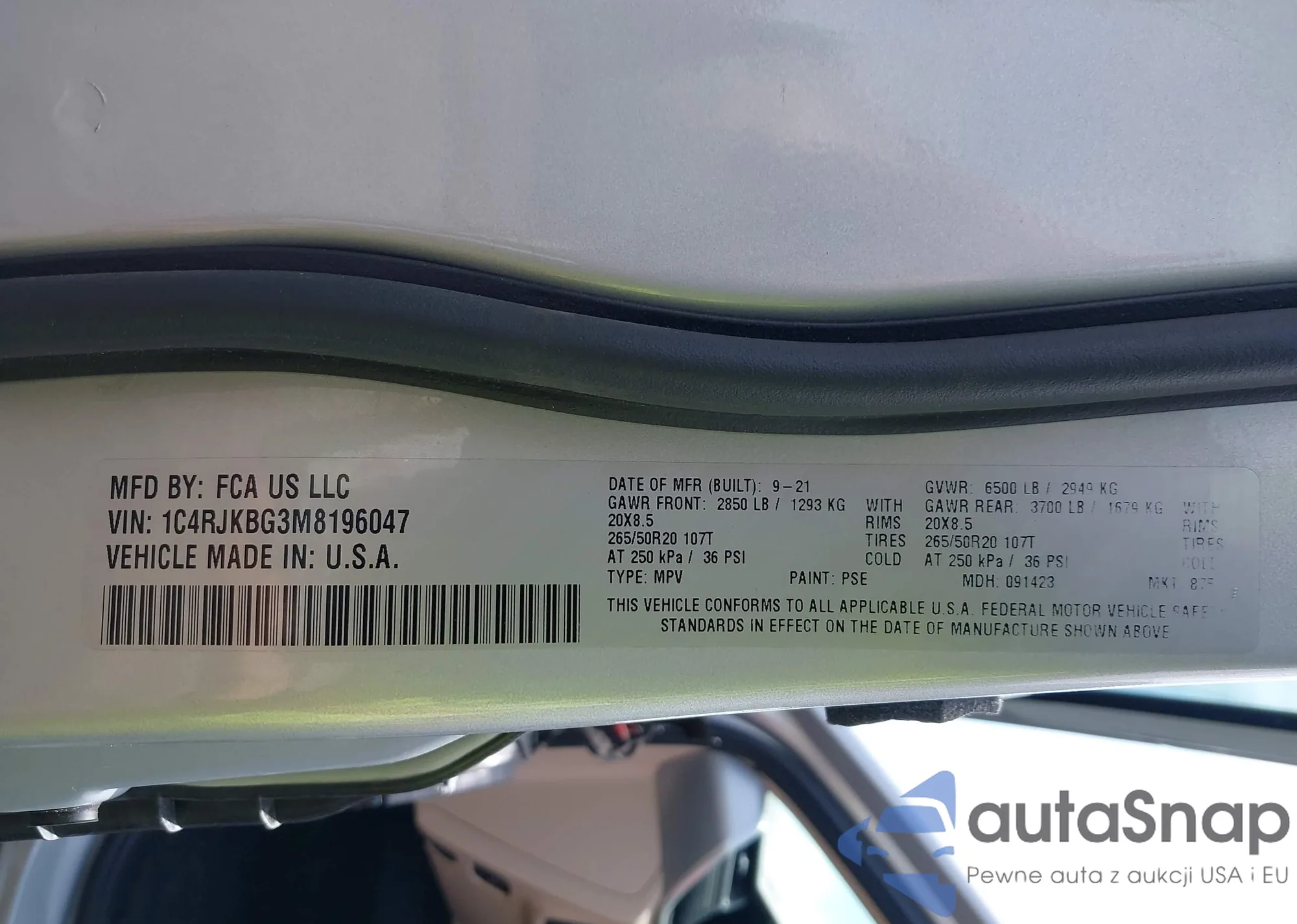 VIN: 1C4RJKBG3M8196047