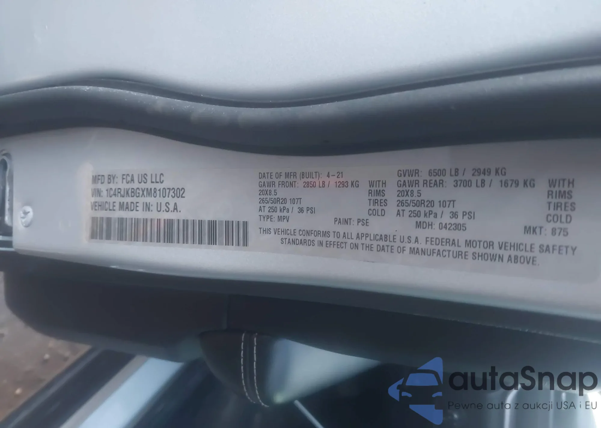 Samochód Jeep Grand Cherokee 2021 (VIN 1C4RJKBGXM8107302) nie był wcześniej licytowany. Dokumenty są czyste, przebieg odpowiada lub jest niższy niż średnia rynku. Sprzedaje go firma ubezpieczeniowa – polecamy zakup. Dostawa do portu zajmie ok. 6–8 tygodni.