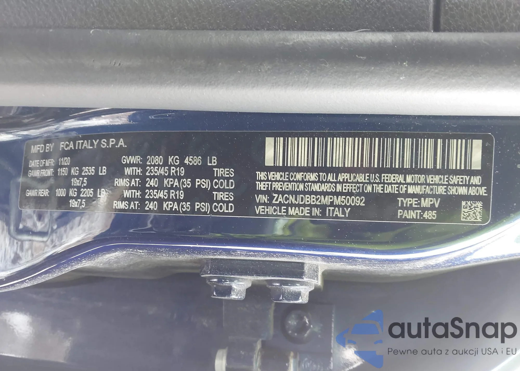 • VIN: ZACNJDBB2MPM50092