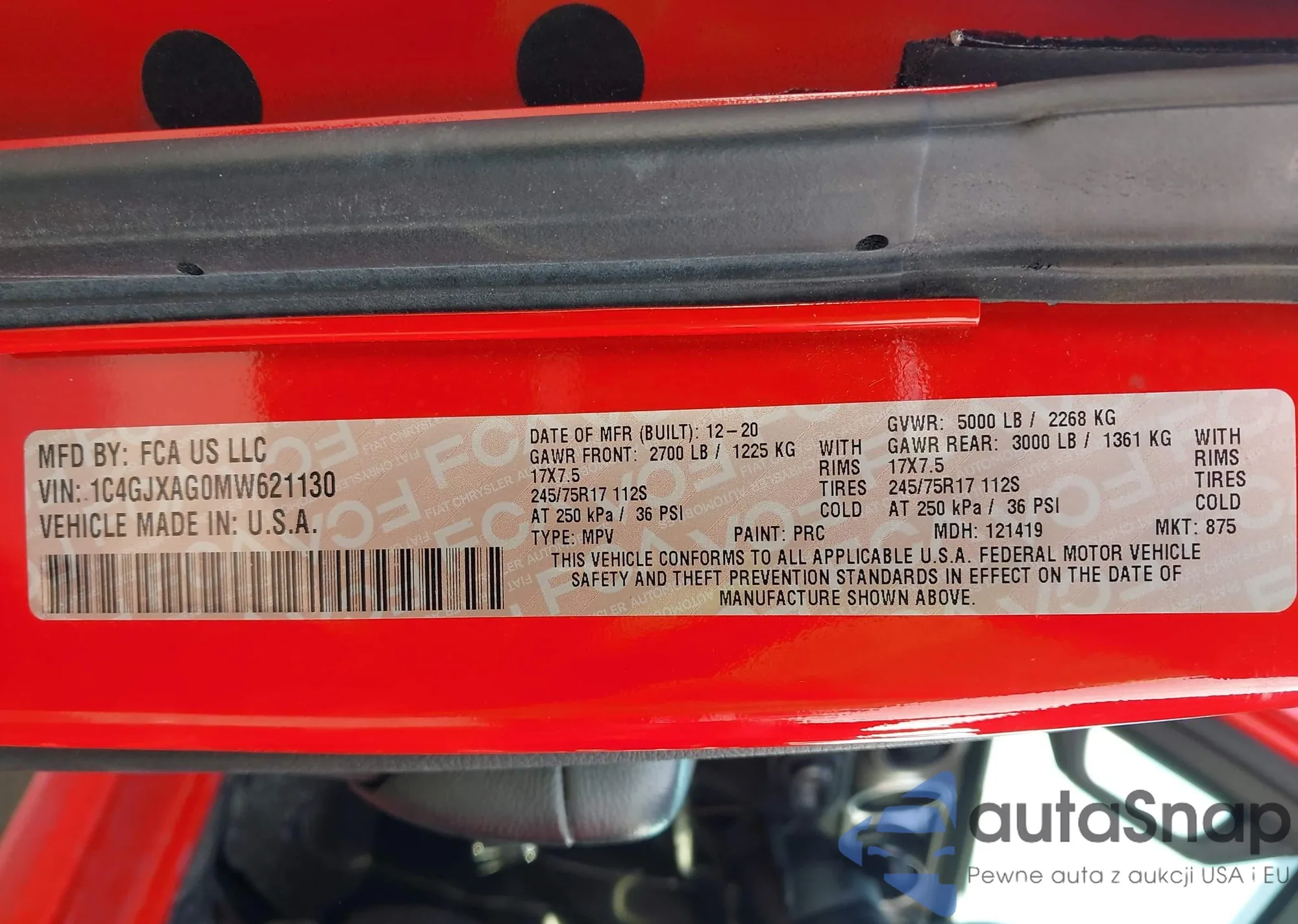 • VIN: 1C4GJXAG0MW621130