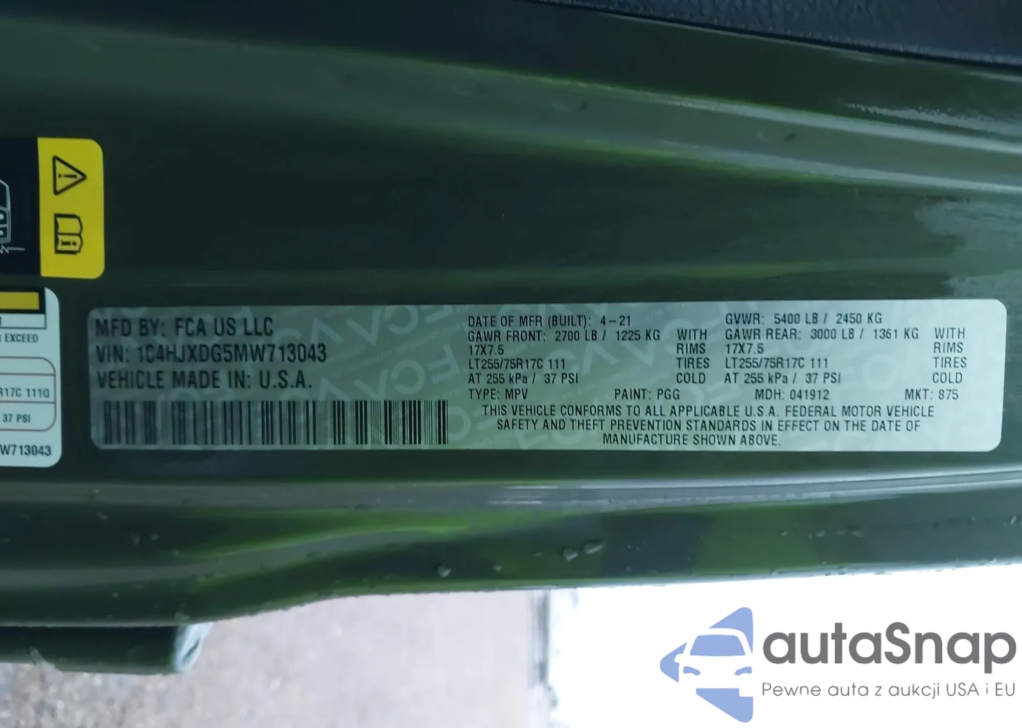 VIN: 1C4HJXDG5MW713043