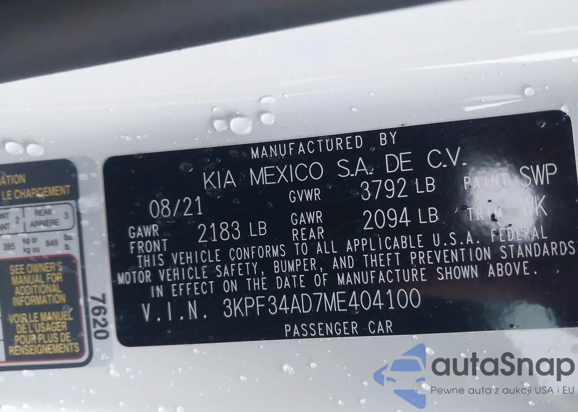 Samochód Kia Forte 2021 (VIN 3KPF34AD7ME404100) nie był wcześniej licytowany. Dokumenty są czyste, przebieg odpowiada lub jest niższy niż średnia rynku. Sprzedaje go firma ubezpieczeniowa – polecamy zakup. Dostawa do portu zajmie ok. 6–8 tygodni.