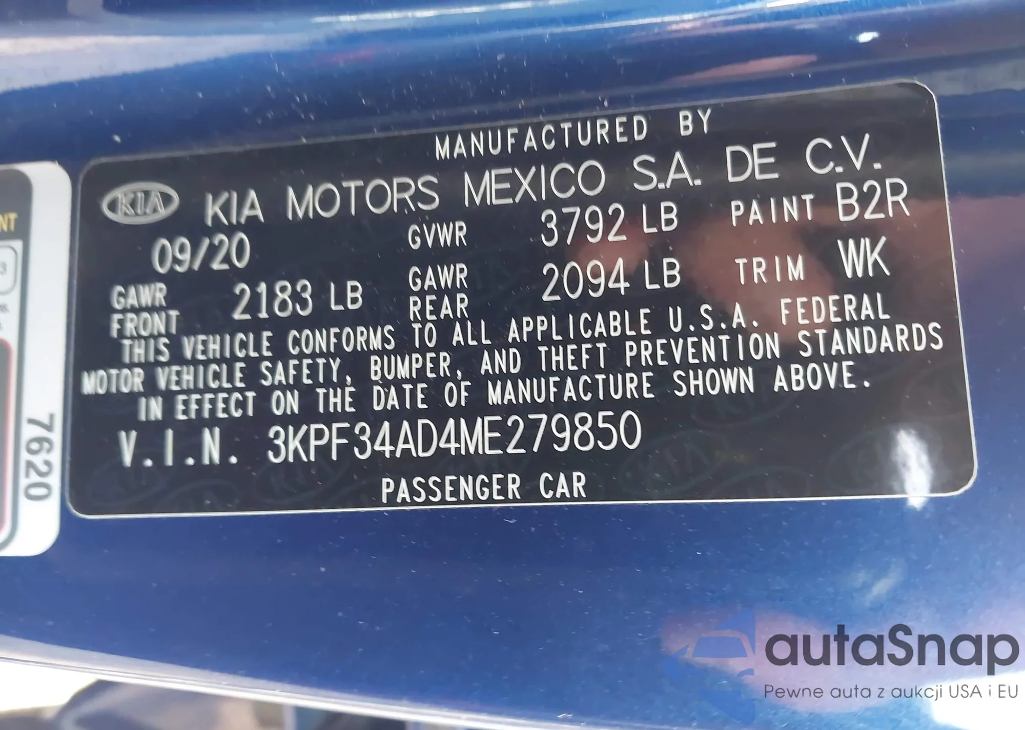 Samochód Kia Forte 2021 (VIN 3KPF34AD4ME279850) ma dokumenty uniemożliwiające rejestrację. Mogą pojawić się trudności przy eksporcie i rejestracji. Skontaktuj się z ekspertami AutaSnap w celu znalezienia alternatywy.