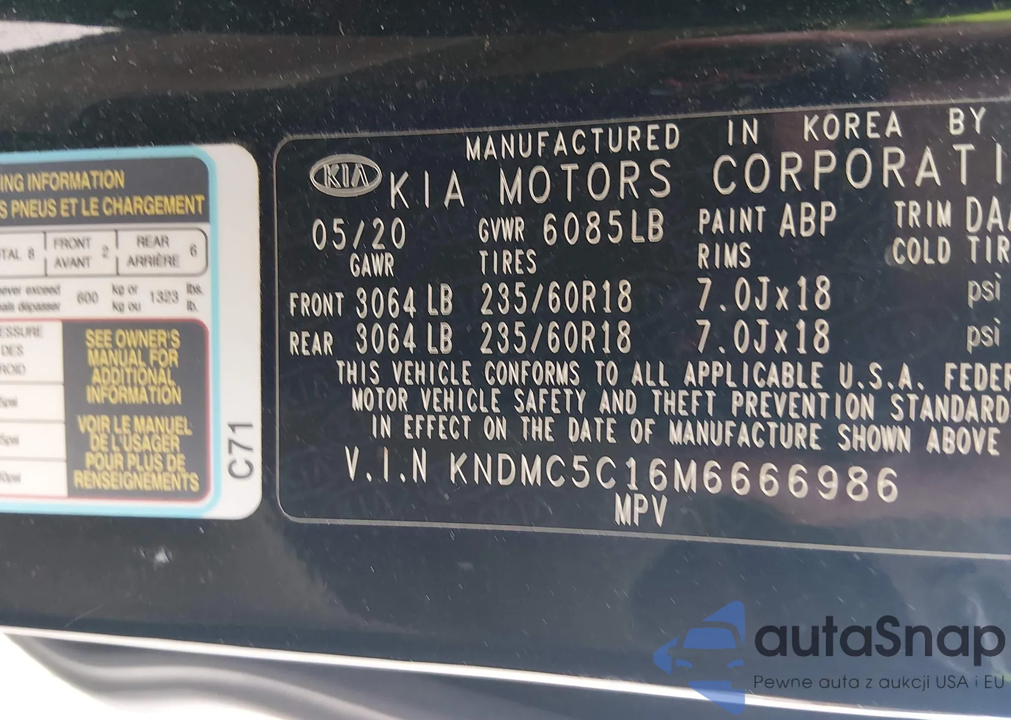 • VIN: KNDMC5C16M6666986