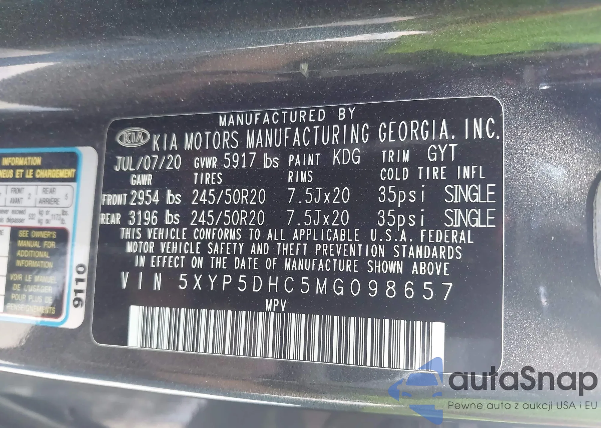 VIN: 5XYP5DHC5MG098657