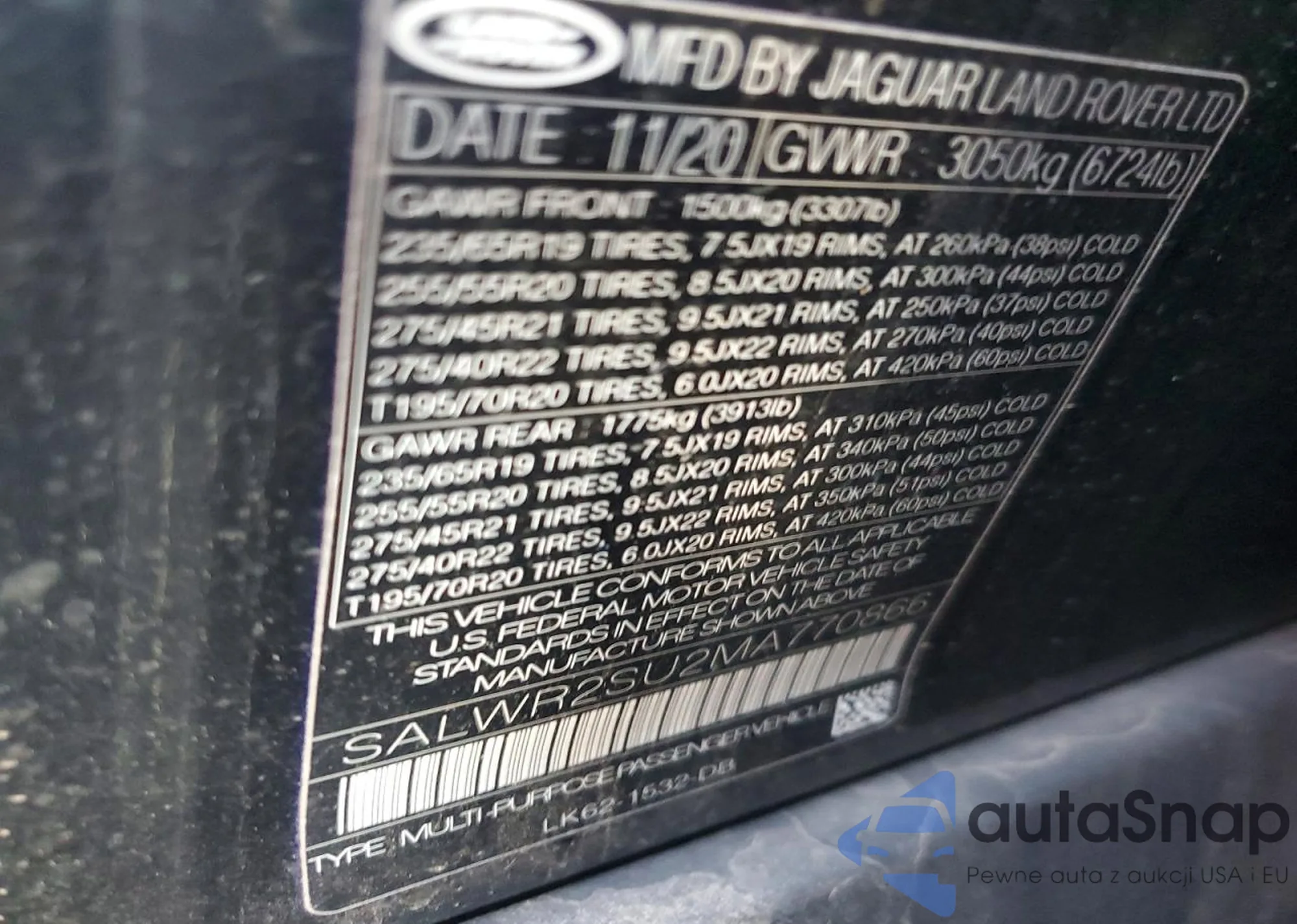 Samochód Land Rover Range Rover 2021 (VIN SALWR2SU2MA770866) sprzedaje go niezweryfikowany sprzedawca. Zalecamy raport Carfax i potwierdzenie możliwości rejestracji pojazdu przed zakupem.