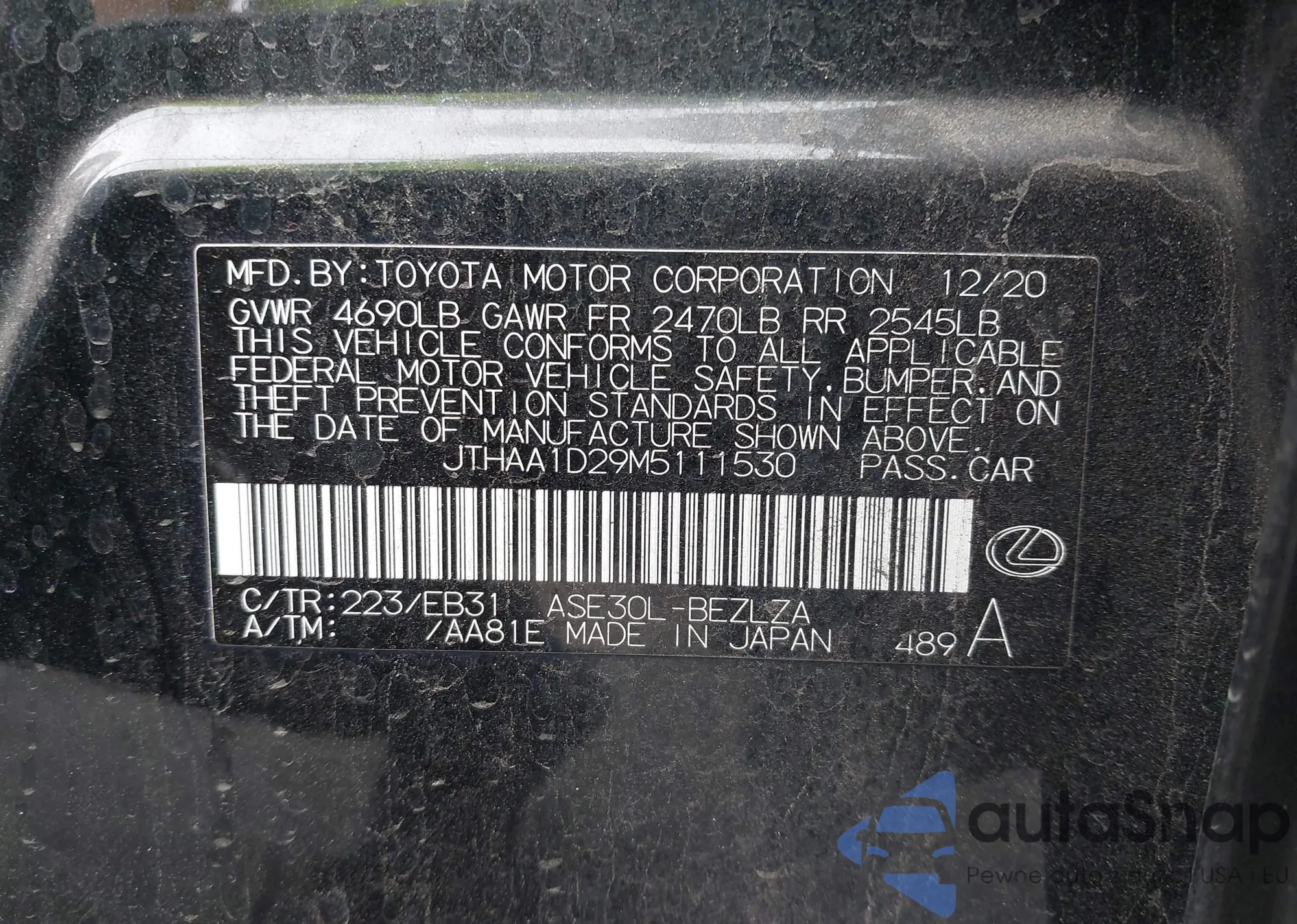 VIN: JTHAA1D29M5111530