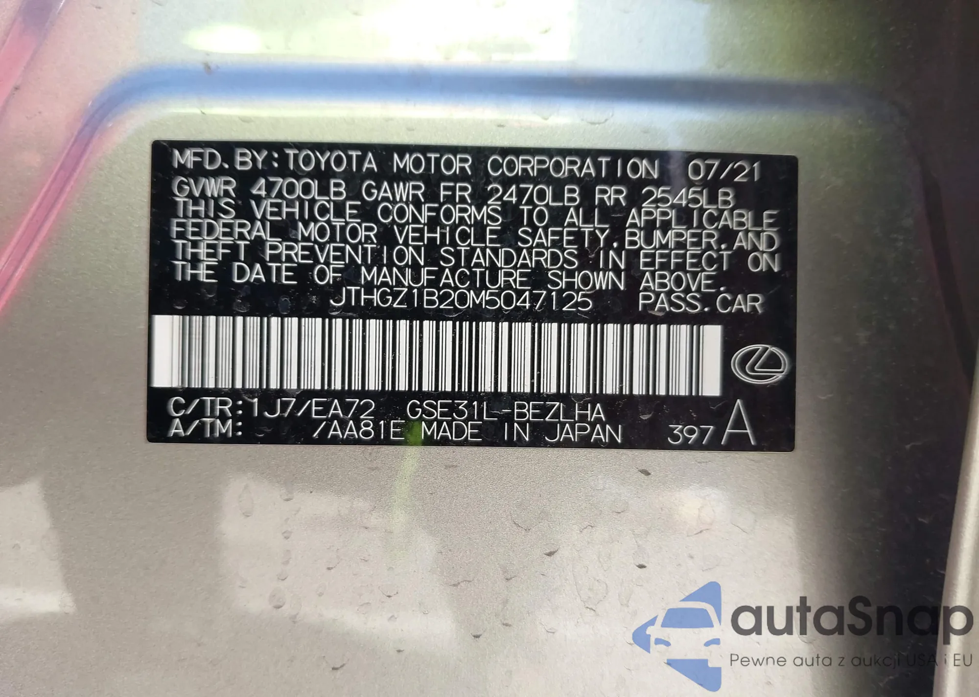 VIN: JTHGZ1B20M5047125