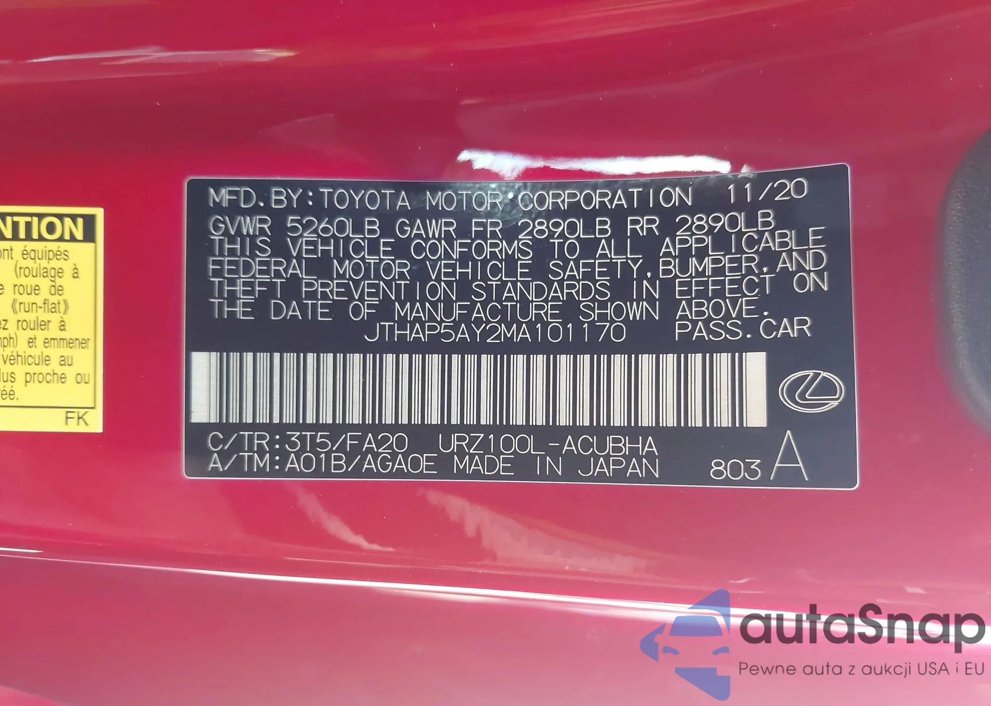 JTHAP5AY2MA101170 IAAI