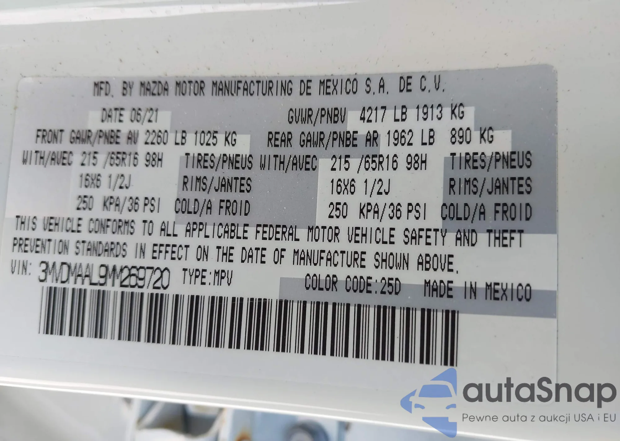VIN: 3MVDMAAL9MM269720