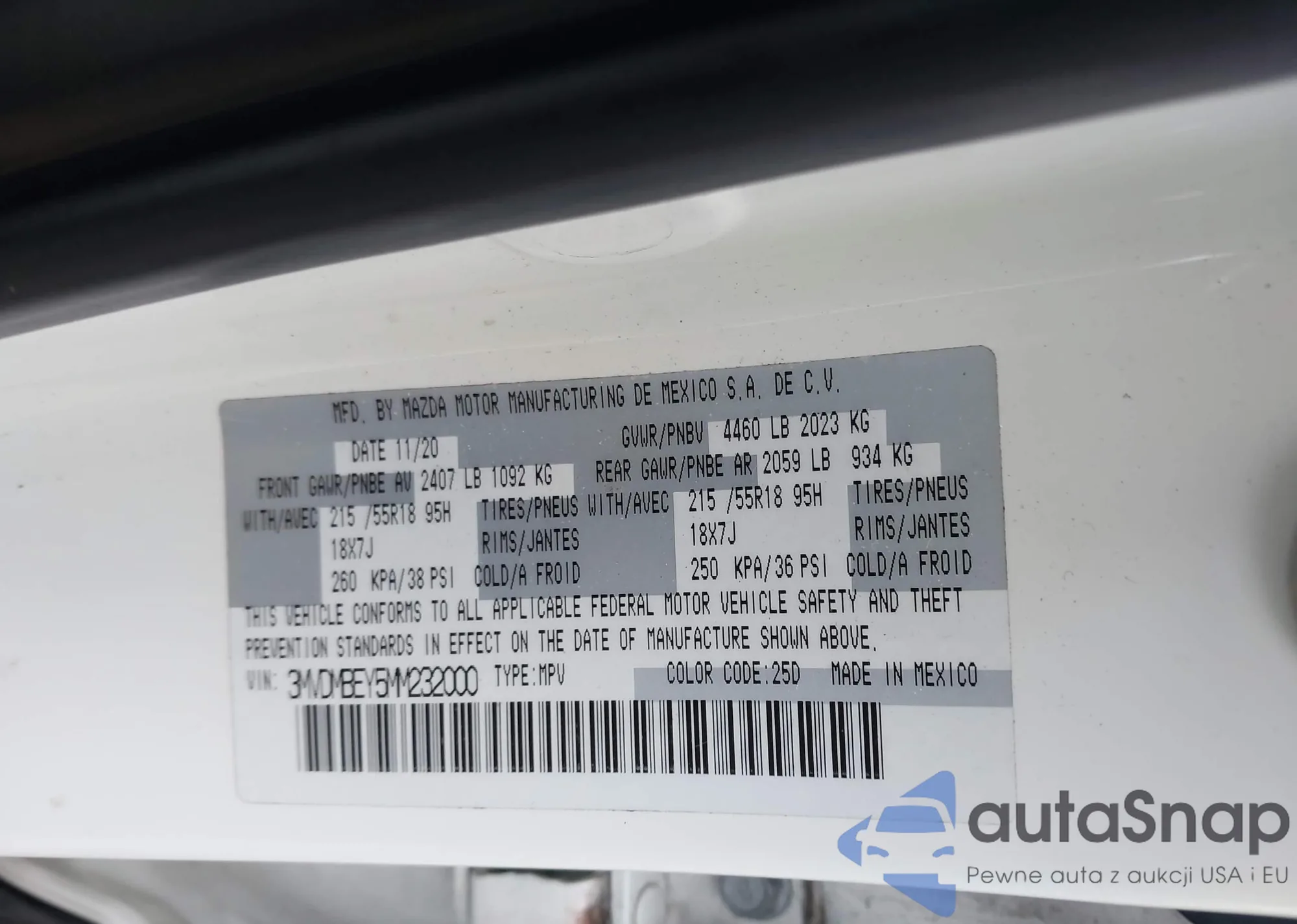 Mazda CX-30 2021 – Historia pojazdu (sprzedany na IAAI)