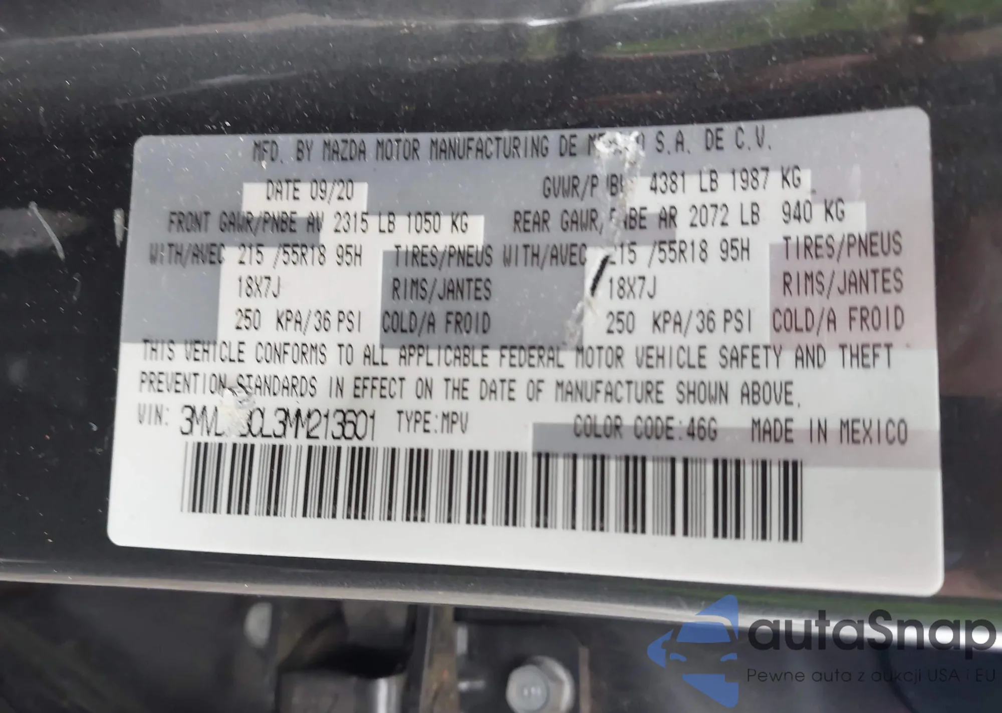 VIN: 3MVDMBCL3MM213601
