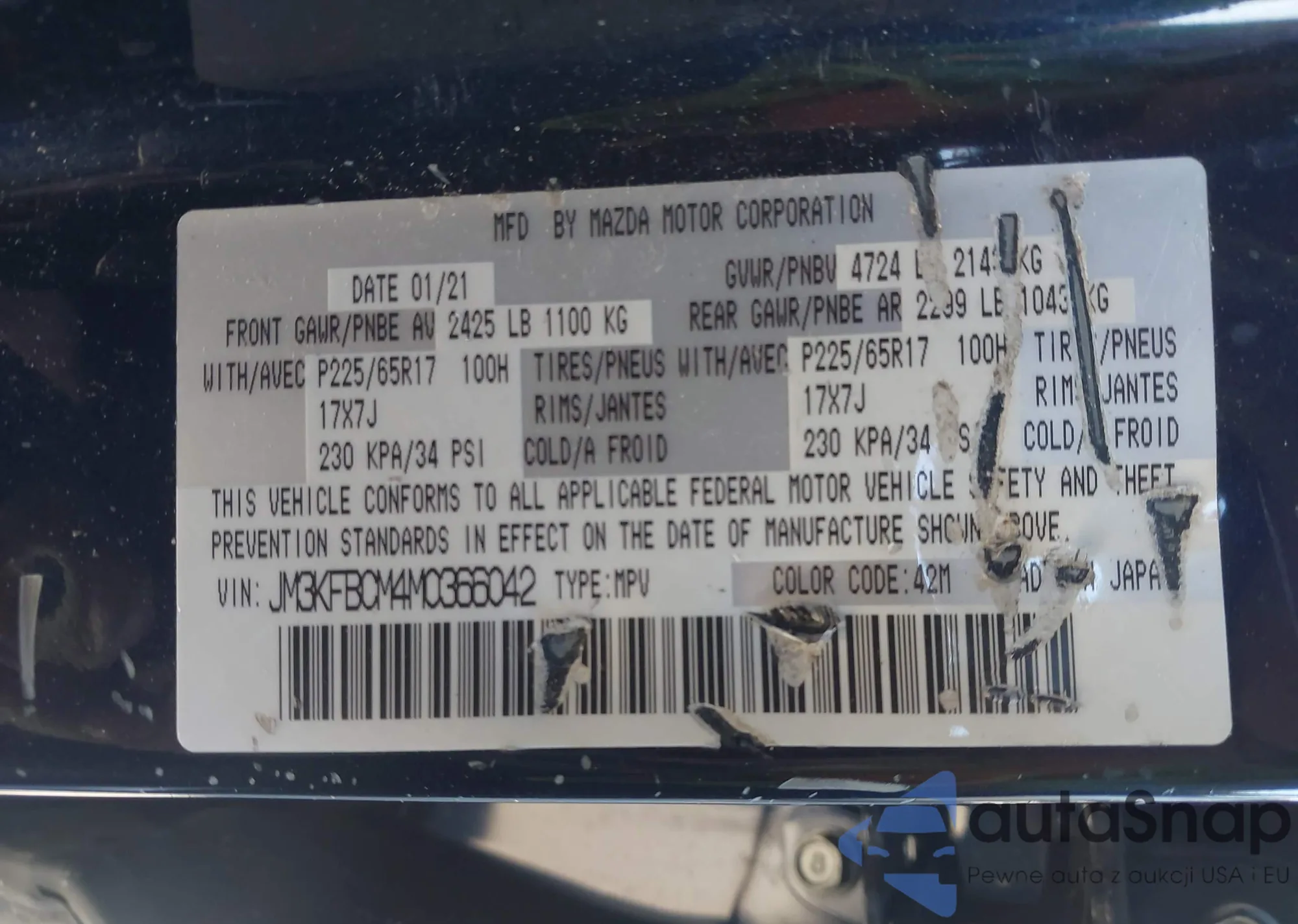 • VIN: JM3KFBCM4M0366042