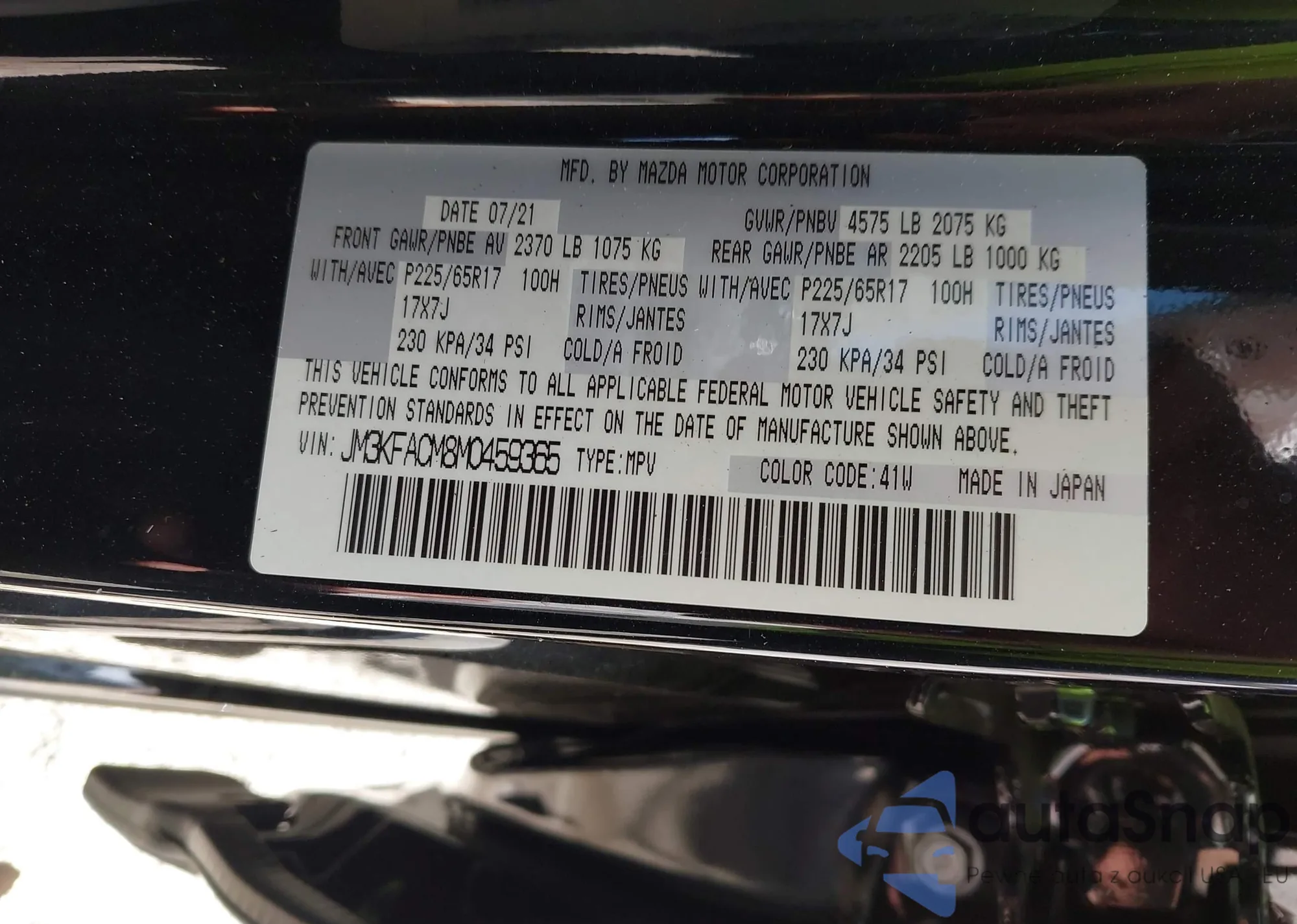 Samochód Mazda CX-5 2021 (VIN JM3KFACM8M0459365) nie był wcześniej licytowany. Dokumenty są czyste, przebieg odpowiada lub jest niższy niż średnia rynku. Sprzedaje go firma ubezpieczeniowa – polecamy zakup. Dostawa do portu zajmie ok. 6–8 tygodni.