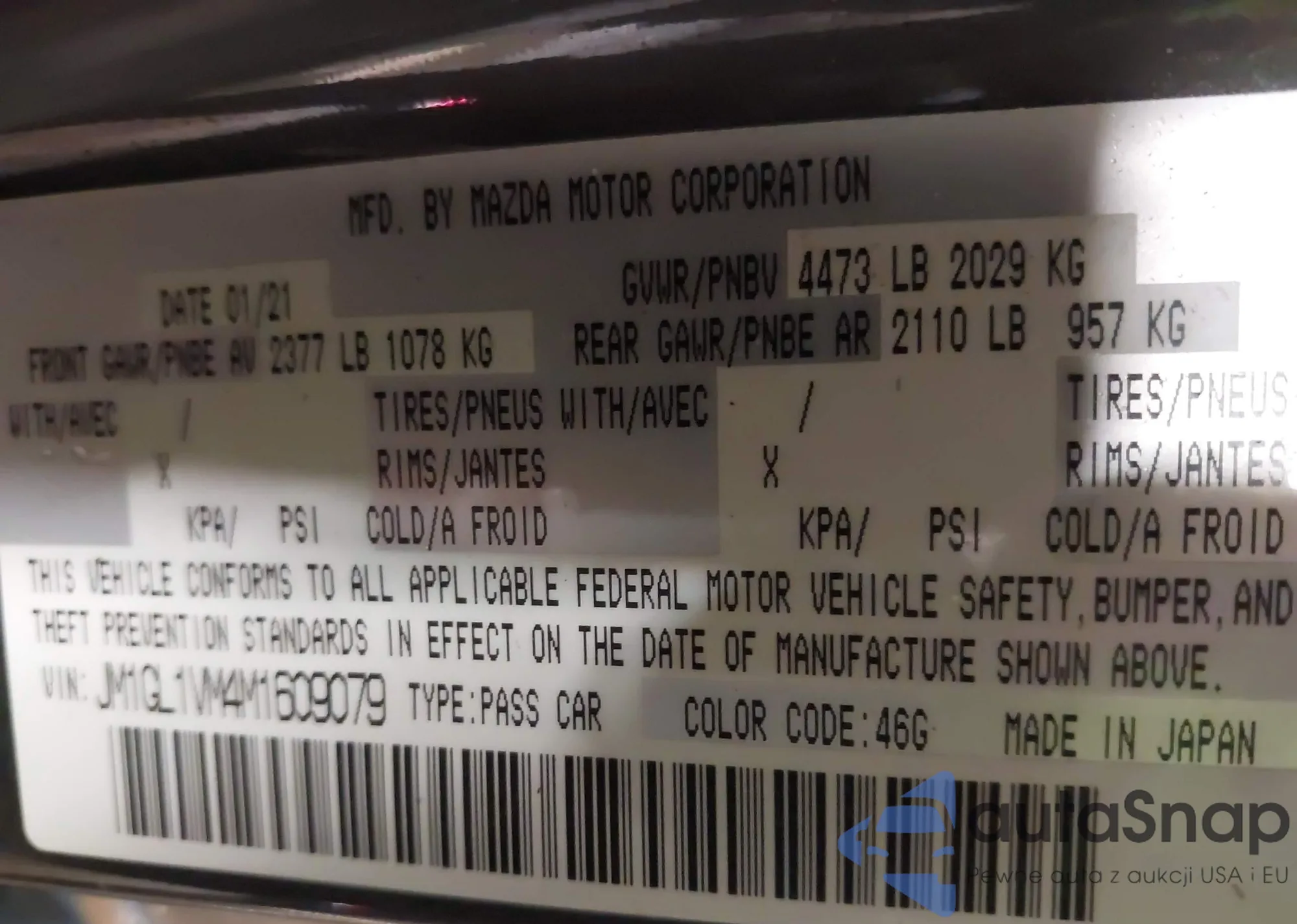 VIN: JM1GL1VM4M1609079