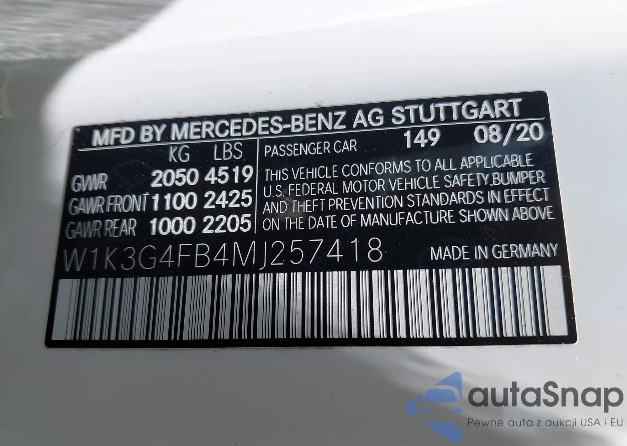VIN: W1K3G4FB4MJ257418