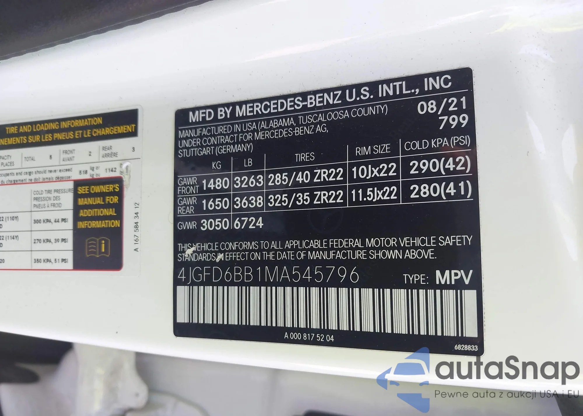 VIN: 4JGFD6BB1MA545796