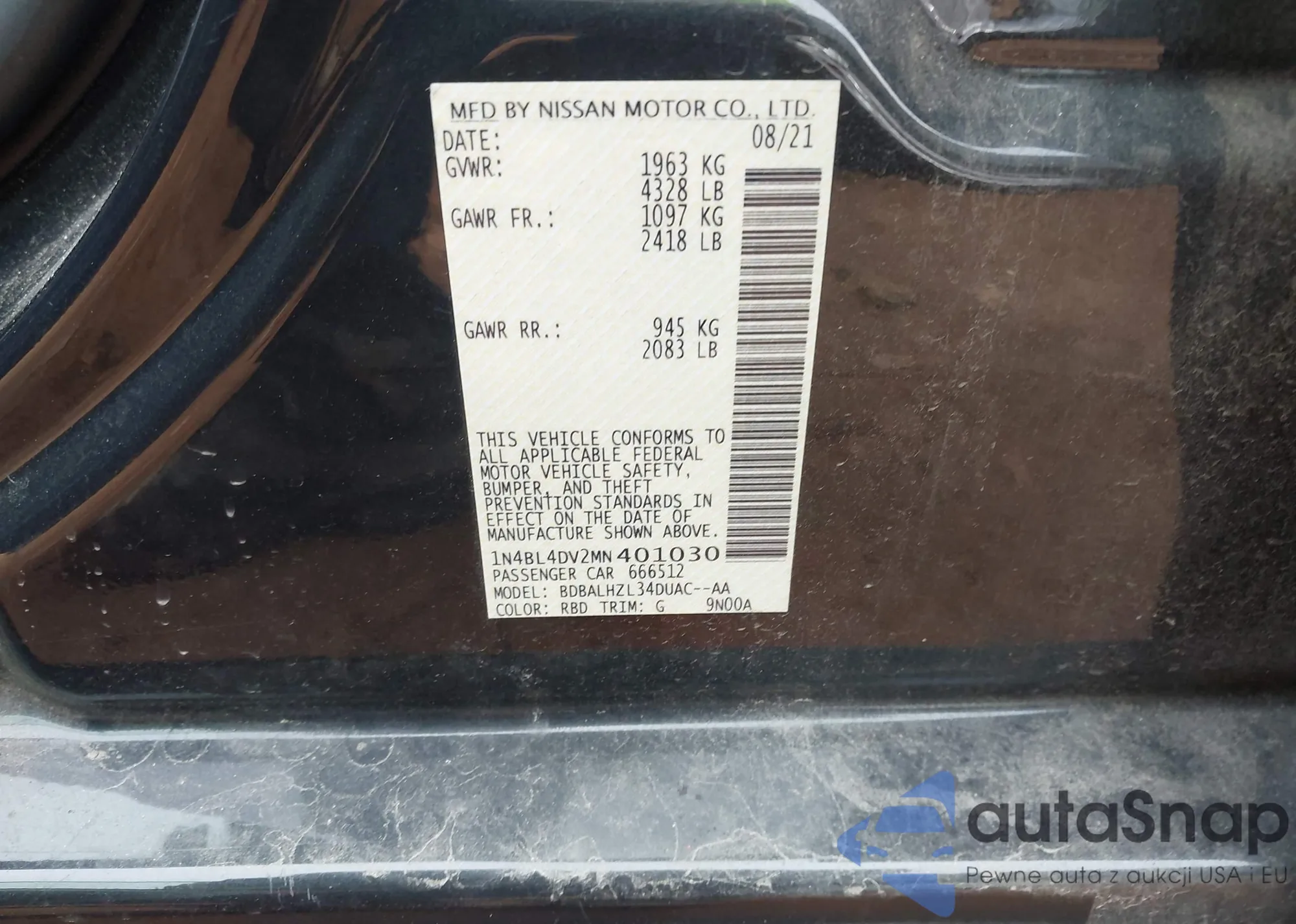 VIN: 1N4BL4DV2MN401030