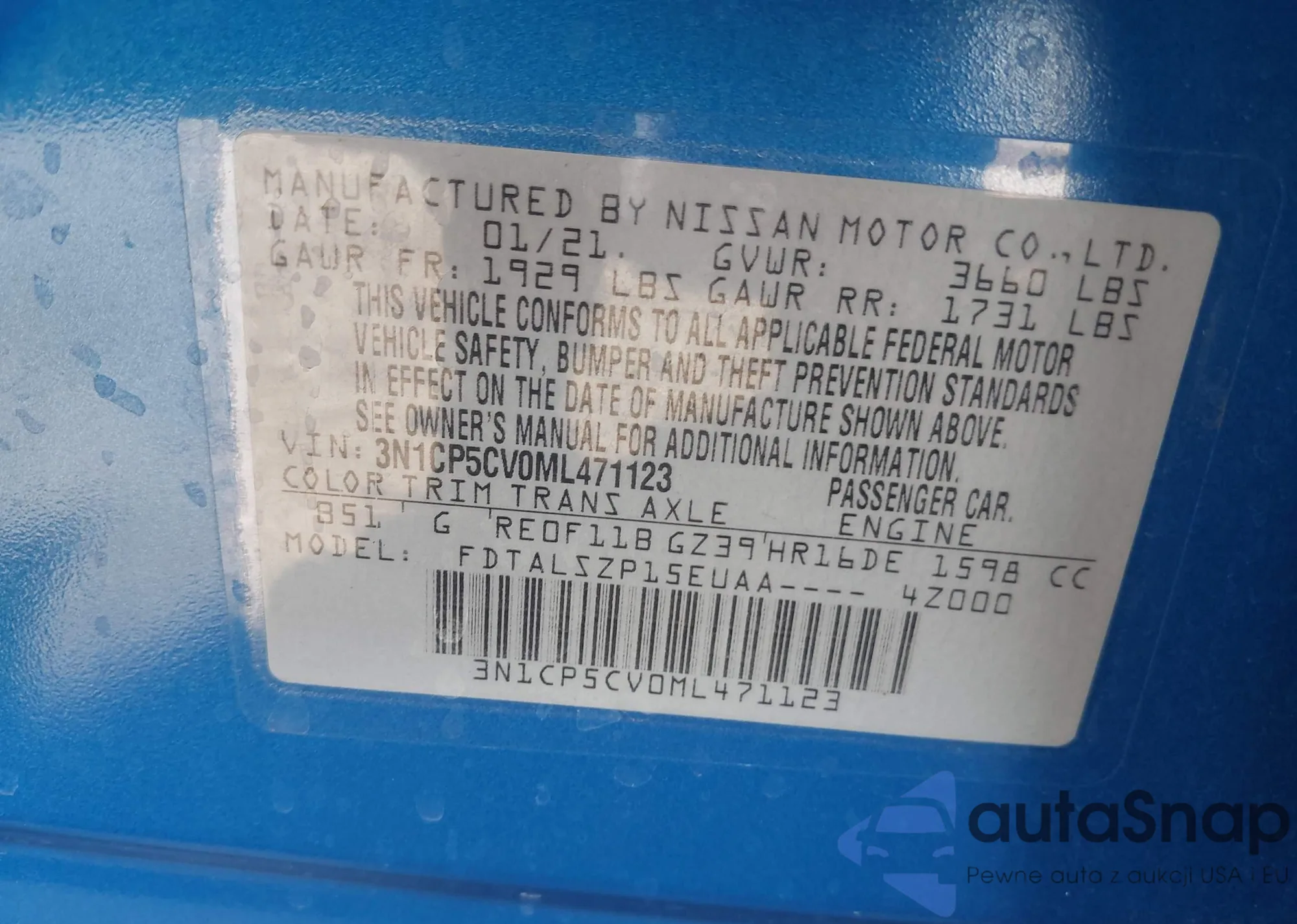• VIN: 3N1CP5CV0ML471123