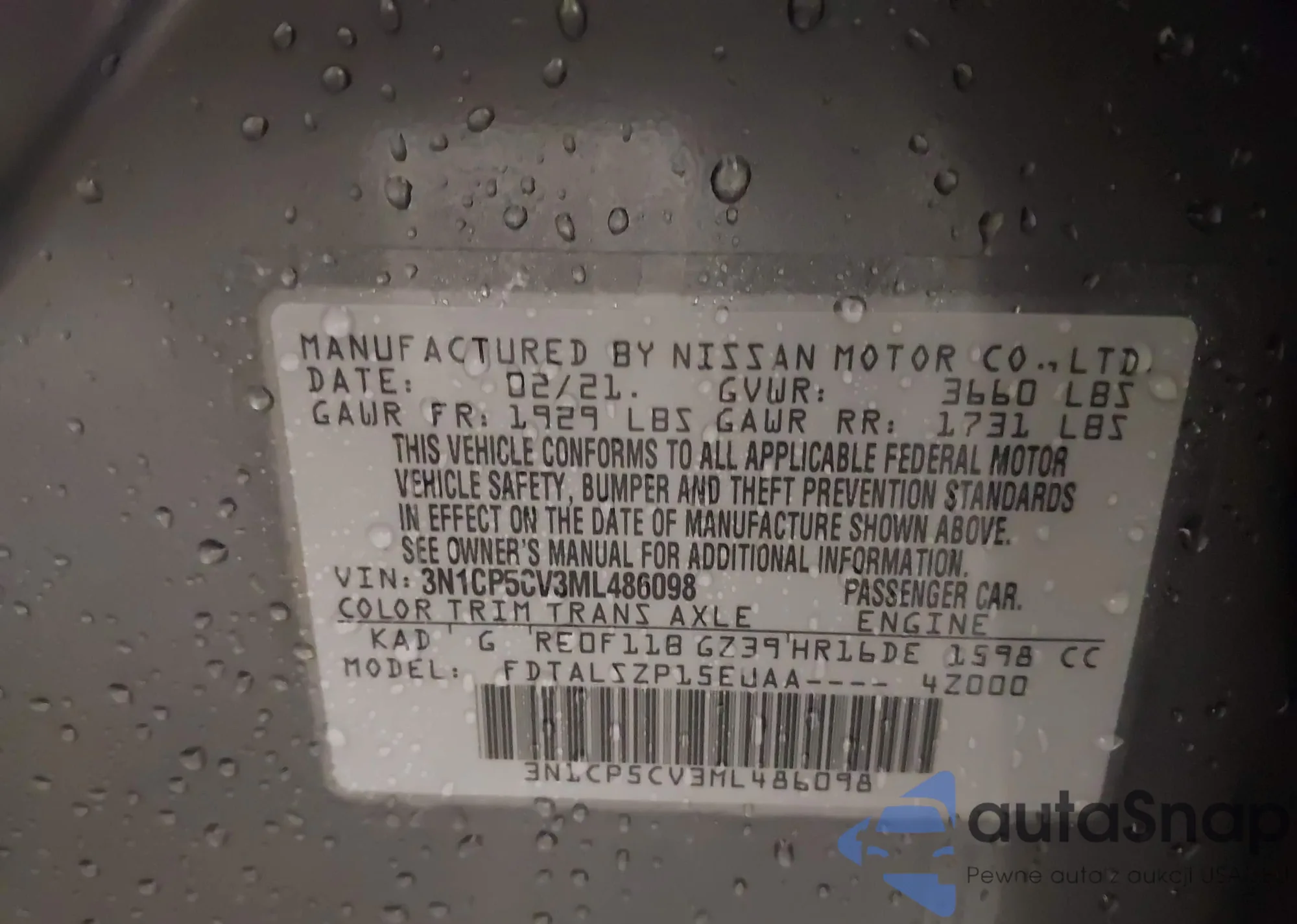 VIN: 3N1CP5CV3ML486098